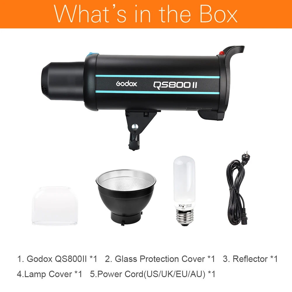 Профессиональный студийный стробоскоп Godox QS800II 800Ws GN90 со встроенным беспроводным Godox 2,4G X-системой обеспечивает креативную съемку