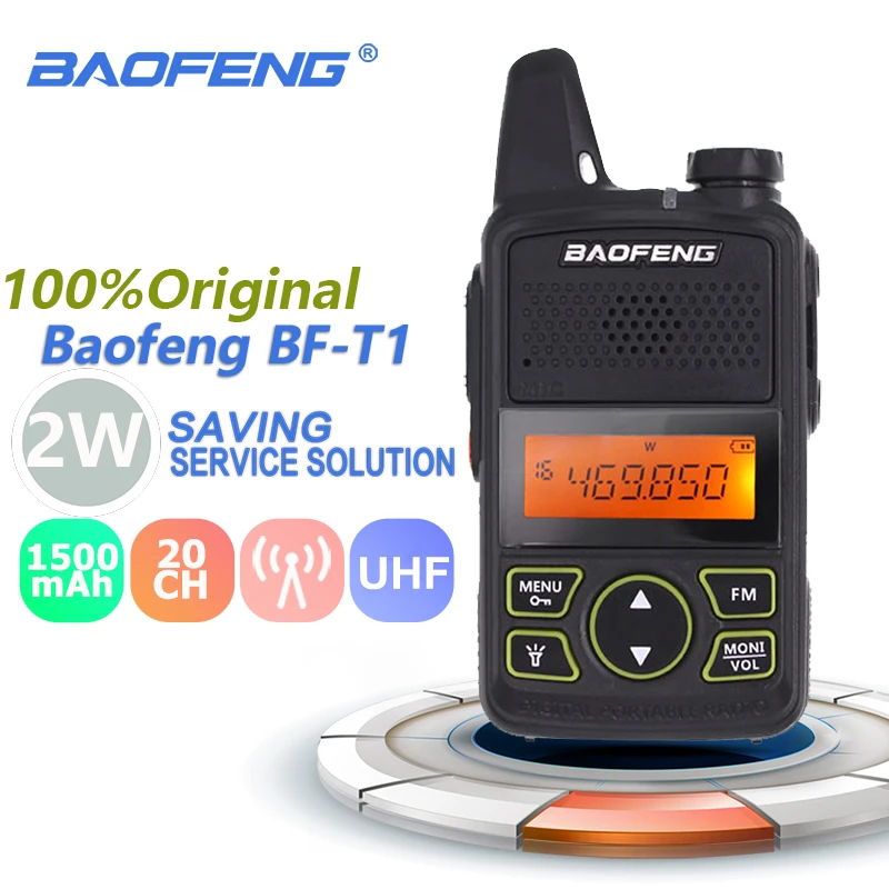 100% оригинальная мини-рация BAOFENG BF-T1 UHF 400-470 МГц, портативная двухсторонняя рация T1, Любительский радиоприемник, микро USB трансивер