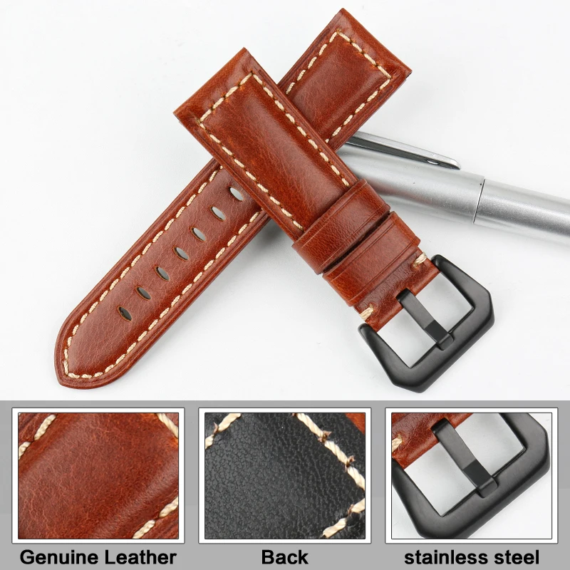 Ремешок для часов MAIKES натуральная кожа часы, из нержавеющей стали, 22 мм, 24 мм, 26 мм