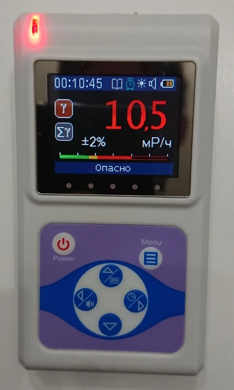 отличный! без крышки 140 мкр/ч. с крышкой (сбоку у рёбер) 70мкр/ч. продавцу спасибо. быстрая доставка до СПб.