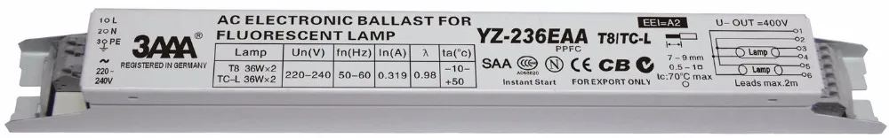 3AAA YZ-236EAA люминесцентная лампа мгновенного запуска электронный балласт для T8/TC-L 36WX2 лампы переменного тока 220-240 в CCC CE CB