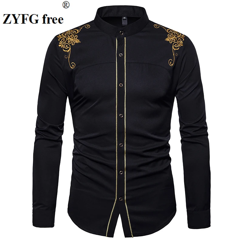 Модные мужские рубашки дворец вышивка с длинным рукавом мусульманск...