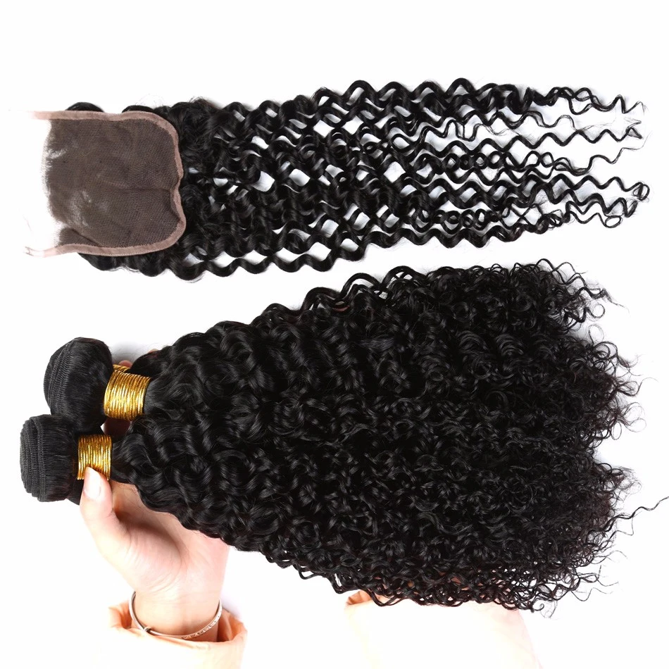 Panse волосы индийские человеческие волосы ткачество 3 шт. утка с 1 шт. закрытие 4X4 Индивидуальные 8 до 28 дюймов кудрявые вьющиеся волосы не Remy