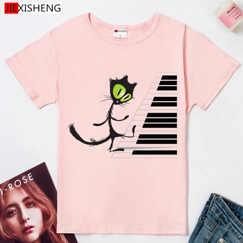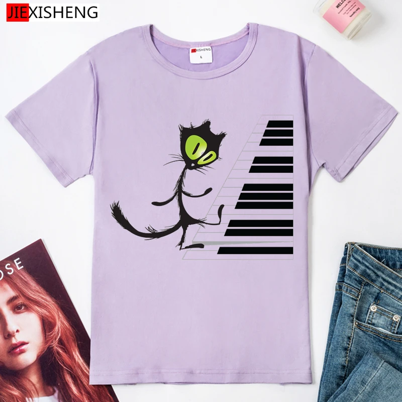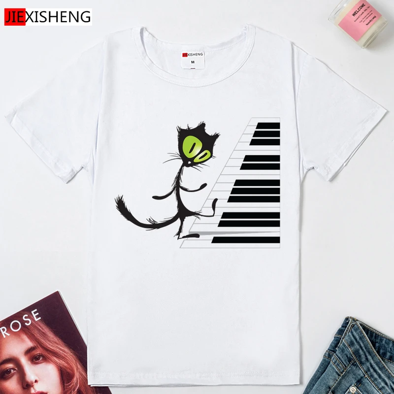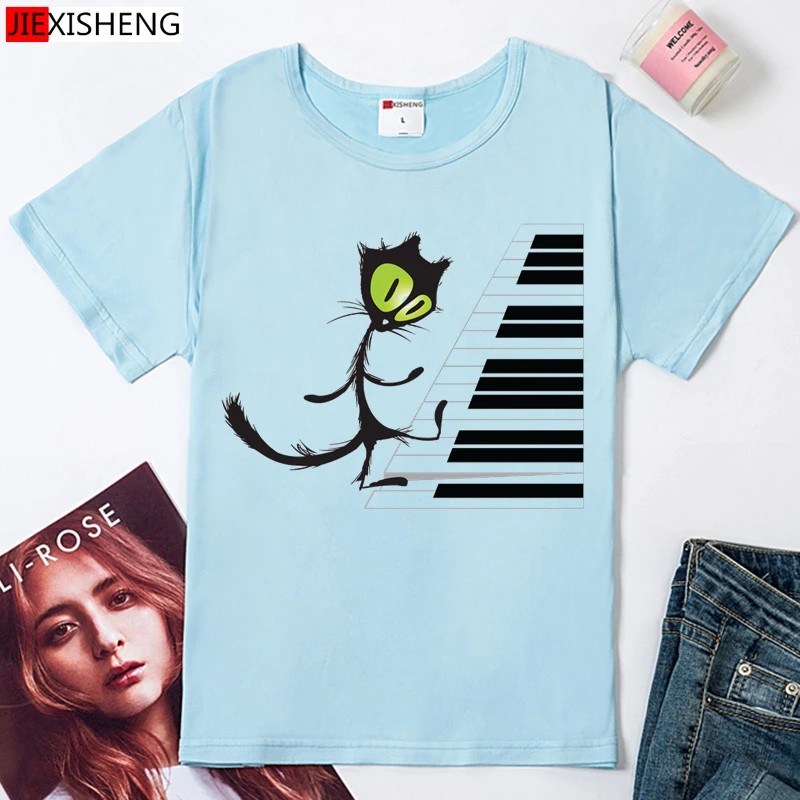 Палка-игрушка для кота пианино принтовые тройники женская одежда 2021 летние Забавные футболки в стиле Харадзюку, повседневные топы с короткими рукавами