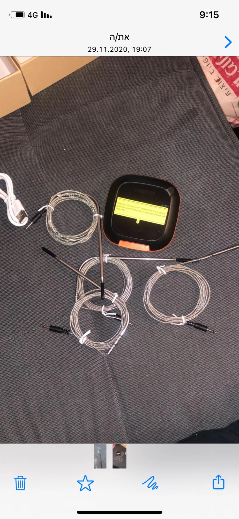 получил все точно. заказал 28.10.2020 , принес курьер 08.11.2020. в Москве.товар соответствует описанию. по QR коду скачал приложение и оно сразу связалось с термометром. очень удобные функции, на каждый щуп можно настроить отдельную температуру для разных продуктов, кстати в приложении уже установлена температура на разные виды продуктов и мяса. Нужно только поставить галочку на против того продукта,в какой вставлен щуп и приложение сообщит когда температура достигнит заданной. Однозначно рекомендую продавца и товар.