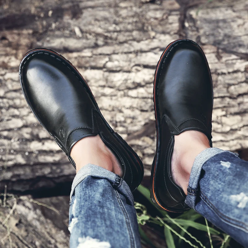 Ниньомужские осенние туфли из натуральной кожи, повседневные износостойкие лоферы на плоской подошве, 45, 46, большие размеры 47, 48, 49, 50