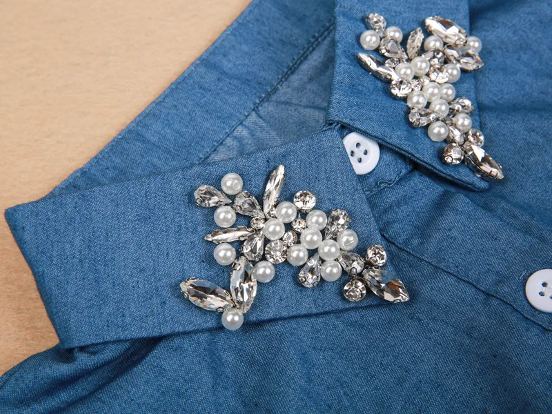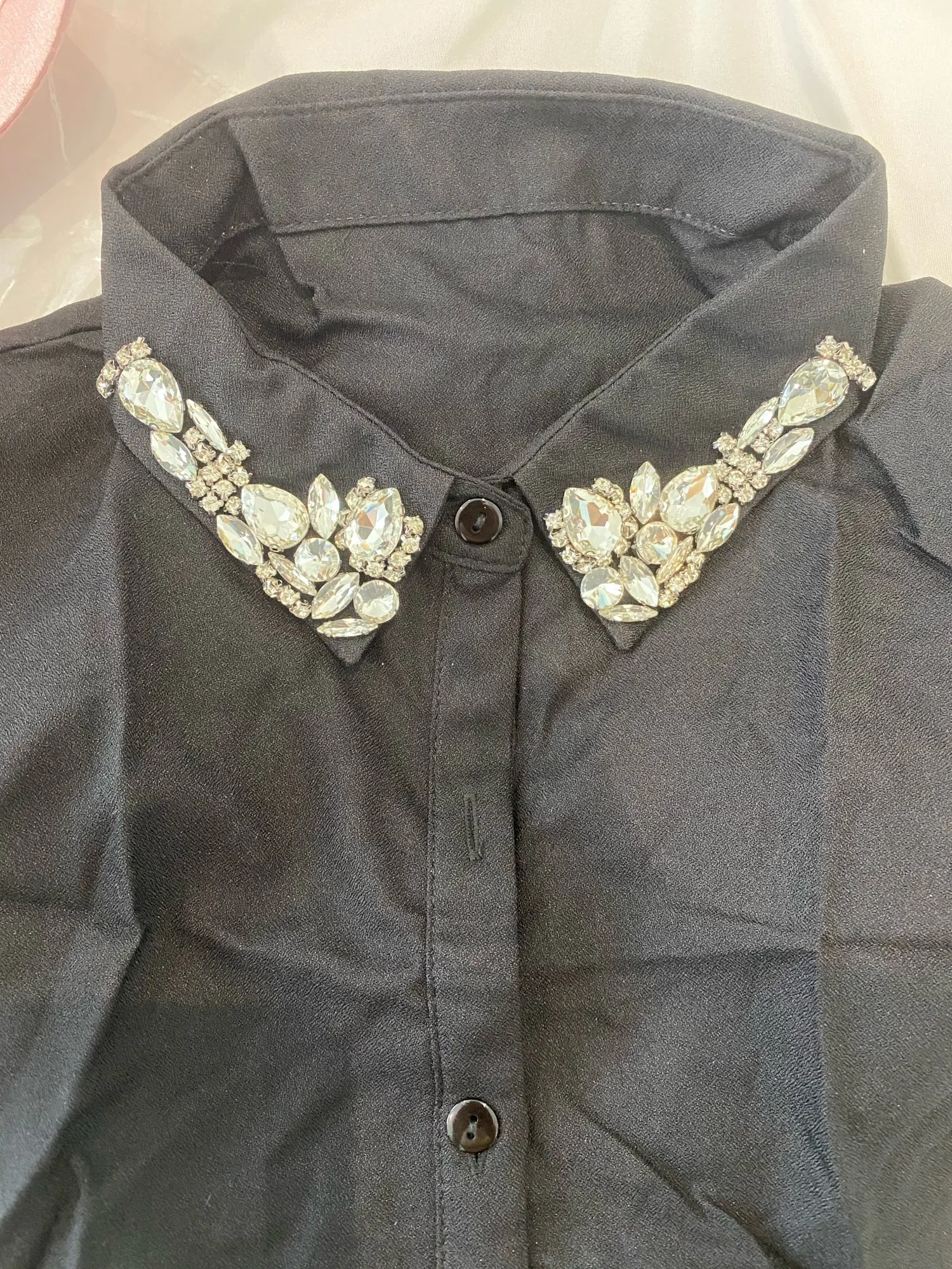 Винтажная Модная белая половинная рубашка, съемная Высококачественная женская блузка с кристаллами, топ с ложным воротником, блузки, съемный воротник Питера Пэна