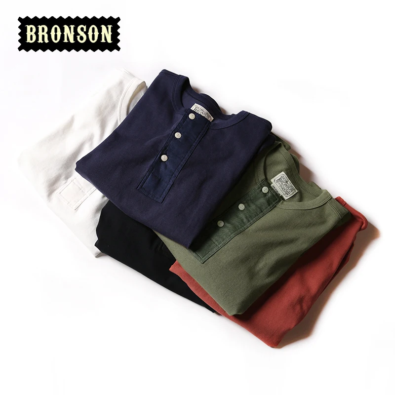 Футболка с принтом Бронсона Хенли Мужская, хлопковая рубашка в стиле старого времени с короткими рукавами, приталенный крой, повседневная винтажная однотонная одежда