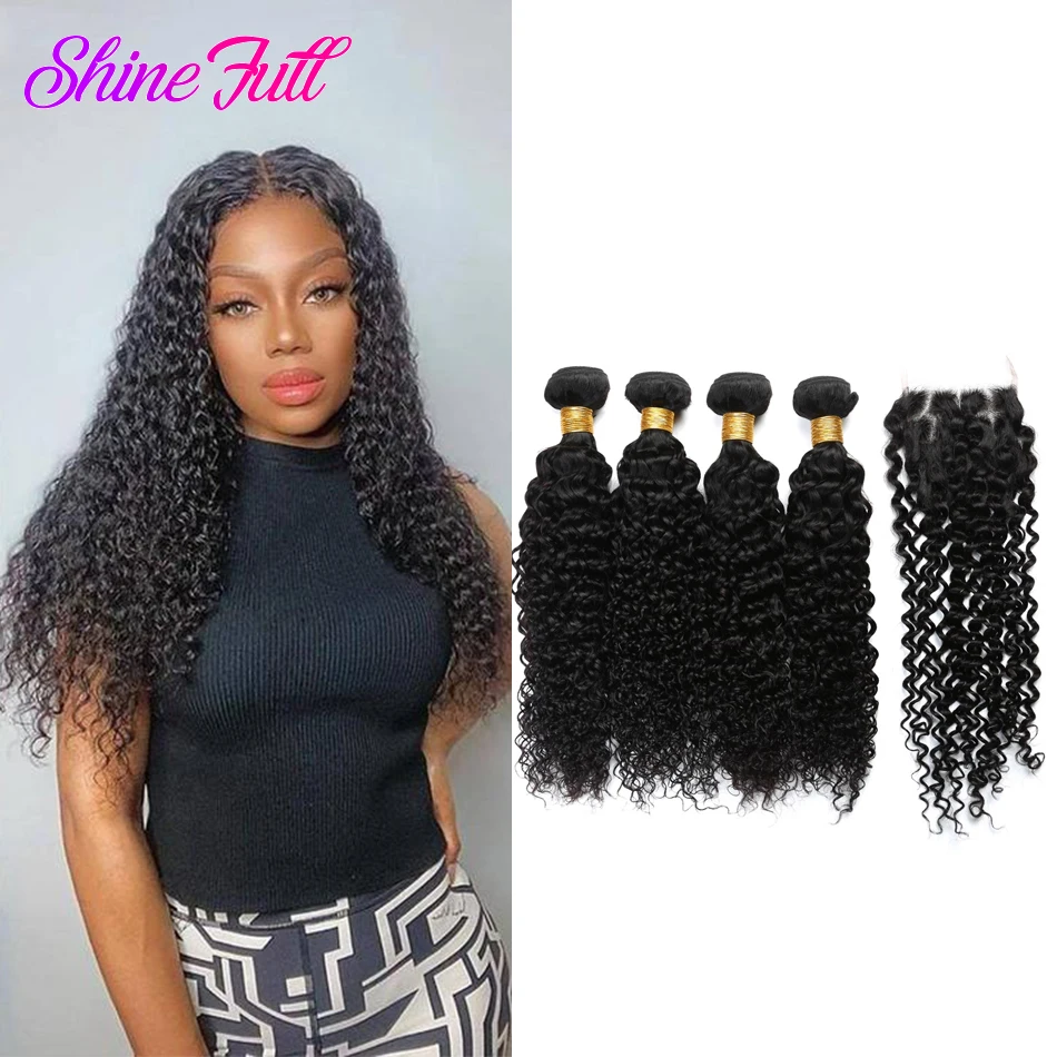 Бразильские кудрявые человеческие волосы, 4 пряди, 8-28 дюймов