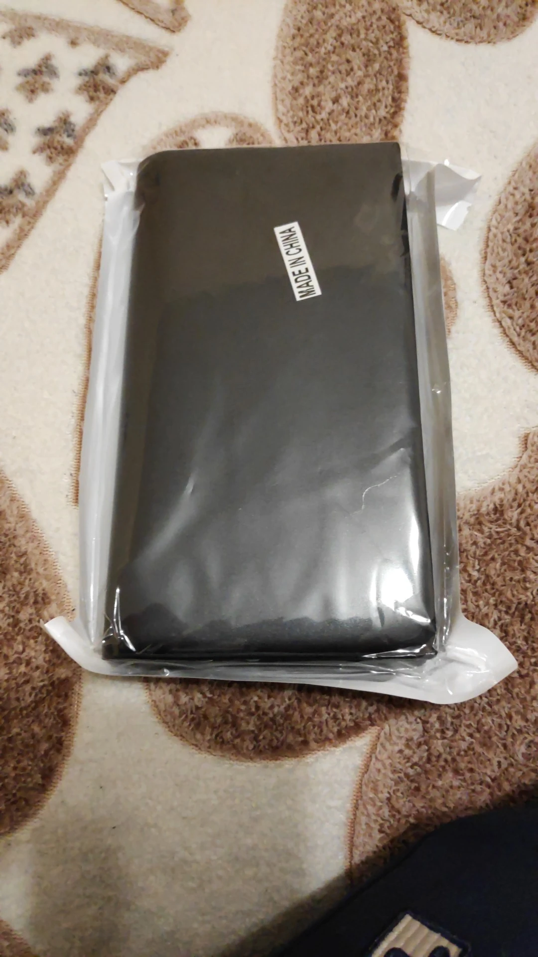 Посылка пришла за 60 дней. Материал - кожзам, но он качественный, крепкий. Заказываем у этой фирмы второй раз. Предыдущий кошелёк отходил 5 лет. Вполне достаточно для его цены. В этой модели только 12 карманов для карточек. Возможно кому-то будет мало. Банкноты помещаются полностью. Есть отдел для монет. Покупкой довольны.