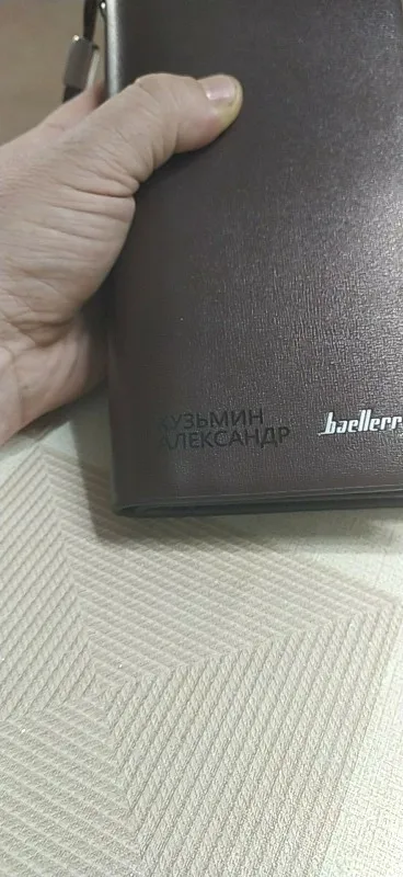 Отличный кошелёк, брала мужу. Материал гладкий и плотный. Кнопки и молния крепкие. Строчки ровные. Края кошелька аккуратные. Ремешок прочный. Для гравировки выбирайте фото, где меньше деталей на фоне и хорошо освещены лица. И на моём примере видно, как я сильно засвечена и детали вообще не видны, а муж хорошо получился. Потому что лицо в обрамлении темного получилось. Проверяйте как ваши фото смотрятся в черно-белом варианте. Детали на слишком светлом фоне и на темном не будут видны. Поэтому чем проще, лаконичней фото, тем лучше! Отличный подарок на все случаи жизни! А! И да, у контр в комментарии видела, что много русских денег не положить. Это так, наши купюры чуть большеваты и загибаются. Но сейчас в основном больше дистанционные оплаты в ходу, поэтому этот нюанс не сильно расстроил. Спасибо продавцу за оперативность и помощь при выборе фото для гравировки (скидывала продавцу в переписке несколько вариантов фотографий). Брелок и записка с пожеланием тоже были вложены. На душе тепло.