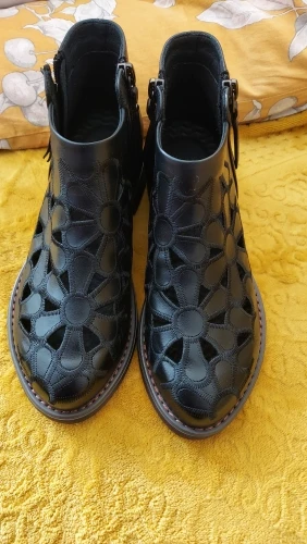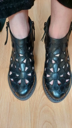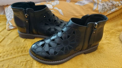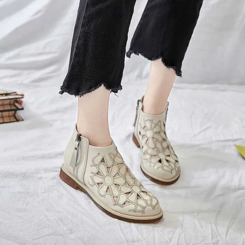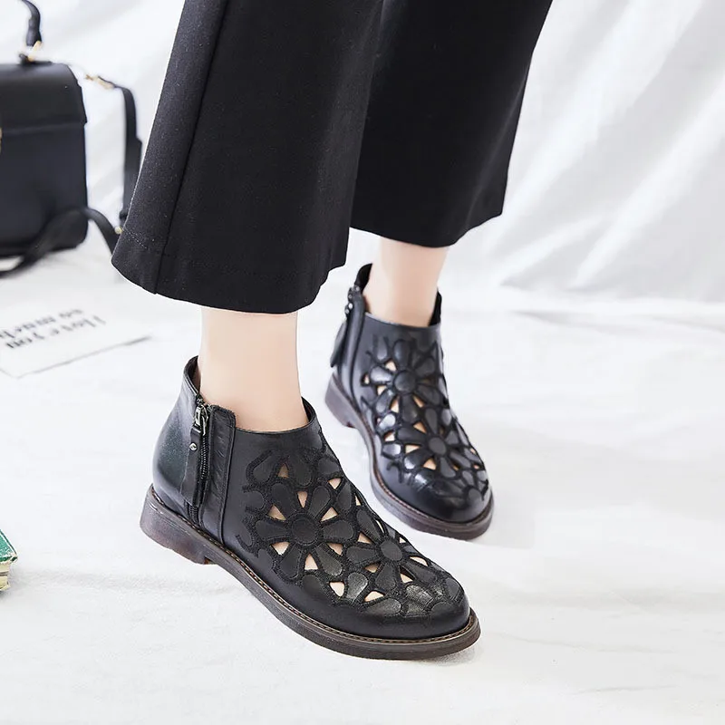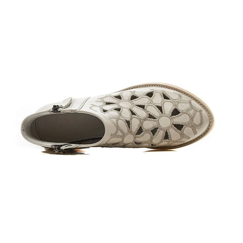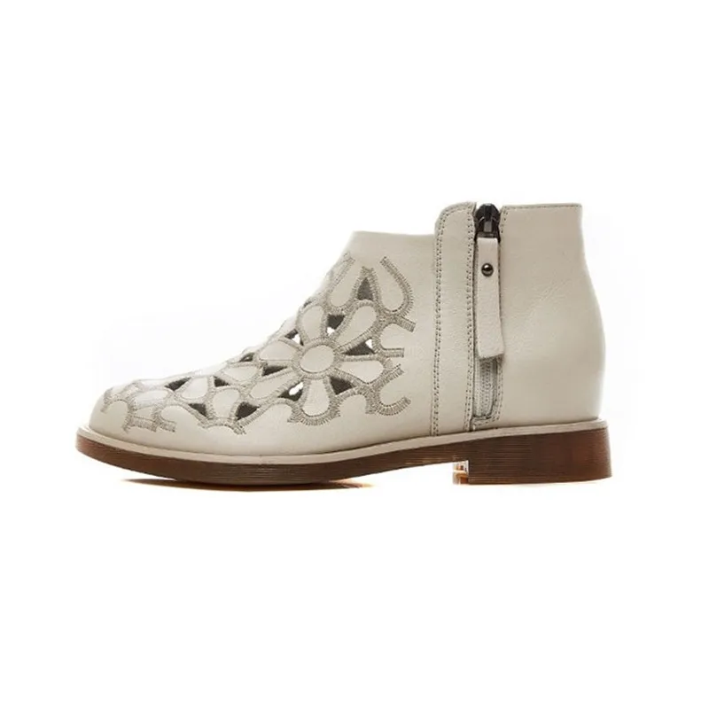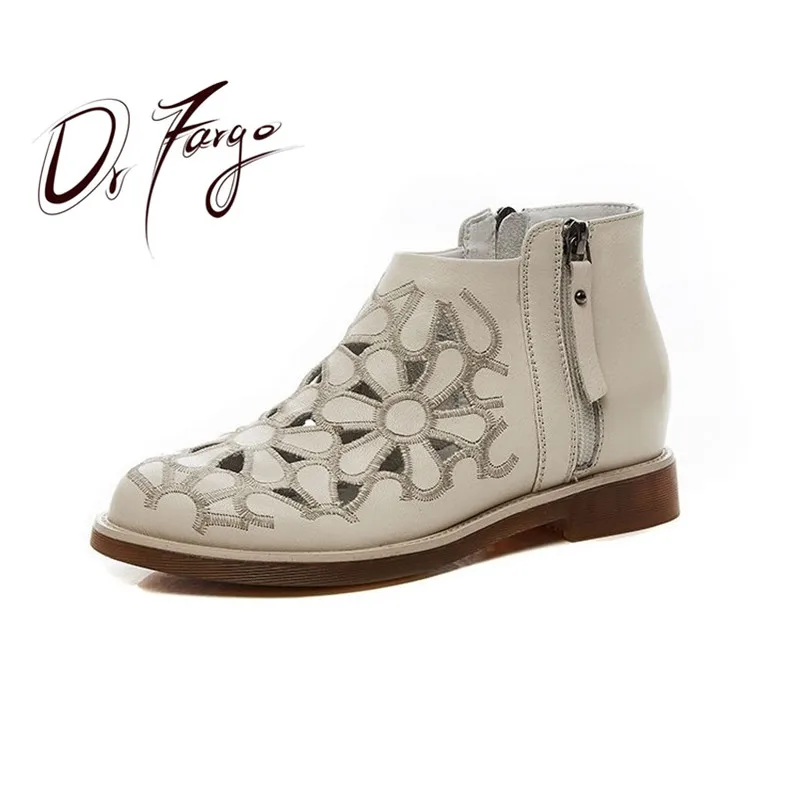 DRFARGOлетние женские ботильоны из натуральной кожи; Прорывные тренды с цветочным узором на низком каблуке с круглым носком; Цвет бежевый, черный; Одна пара; 2020