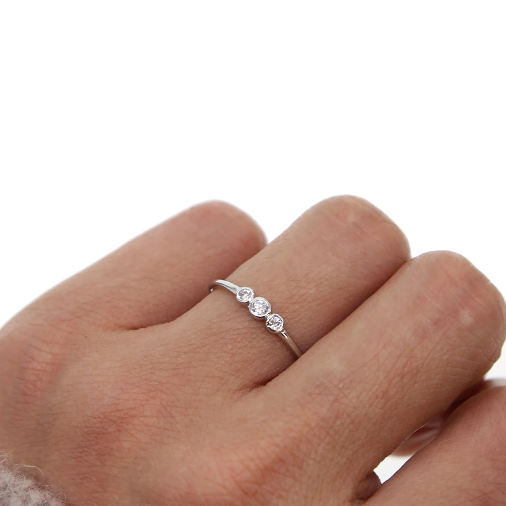 Оптовая продажа с фабрики, тонкое Золотое кольцо, три кубических камня, изящные минималистичные Изящные женские кольца для девушек, простые 925 пробы, серебряные, cz