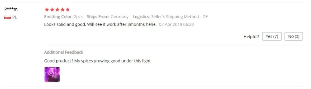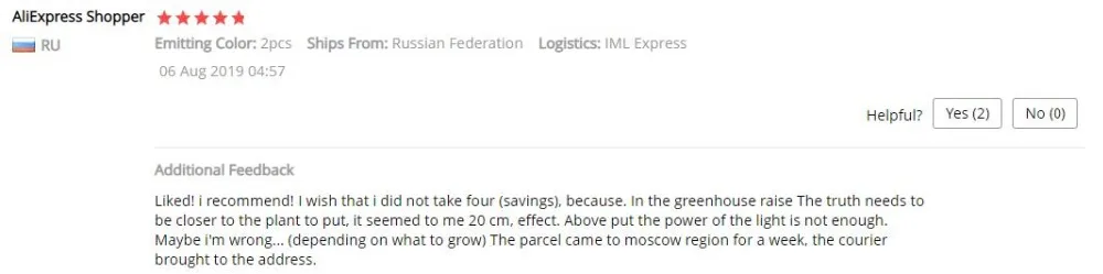 Отличный магазин! Заказываю уже второй раз. Самая быстрая, бесплатная доставка. Продавец отличный. Лампы светят очень ярко, помидоры очень хорошо растут.