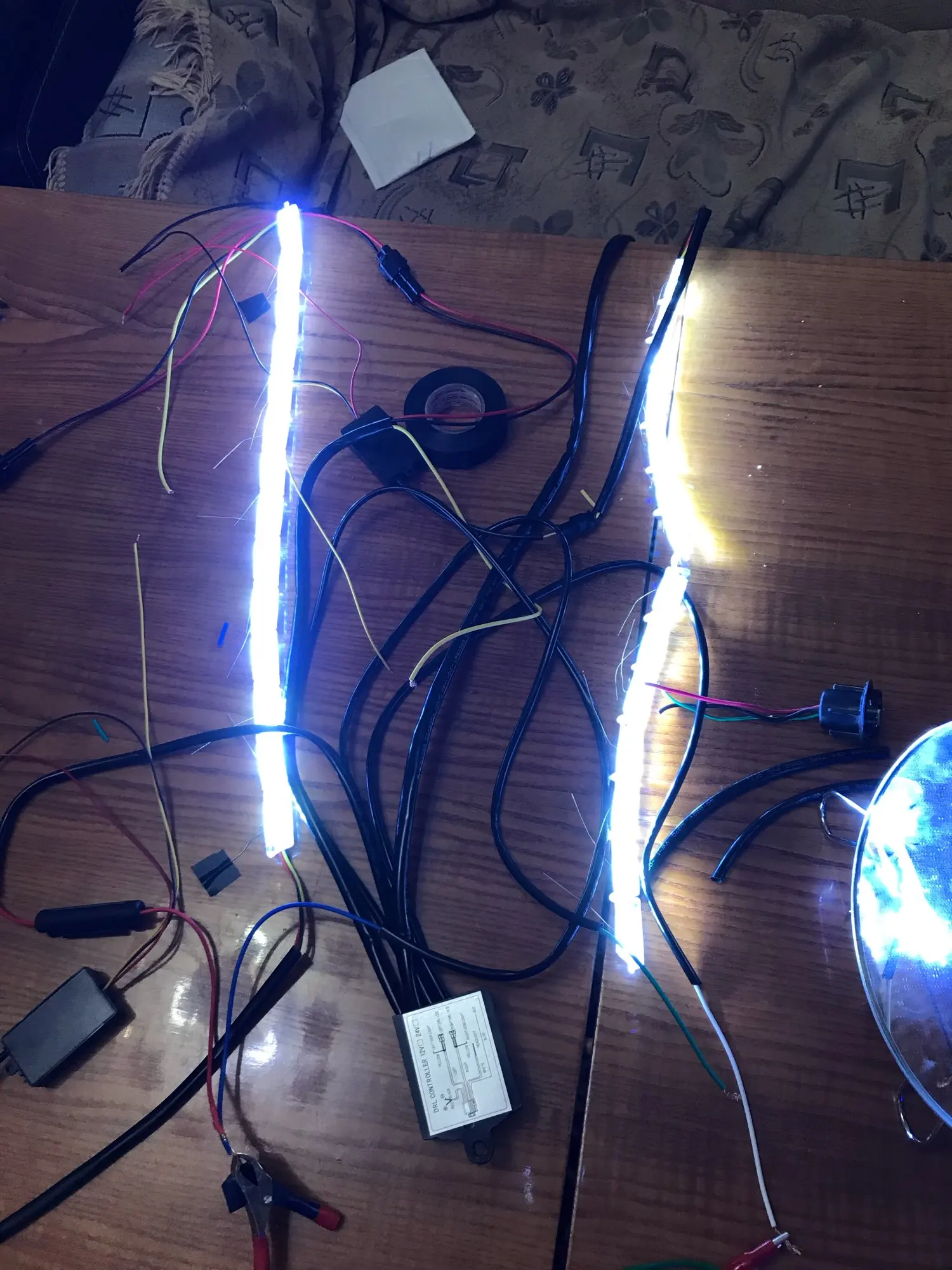 работает не корректно. при подключении провода к габаритам начинает стробоскопить