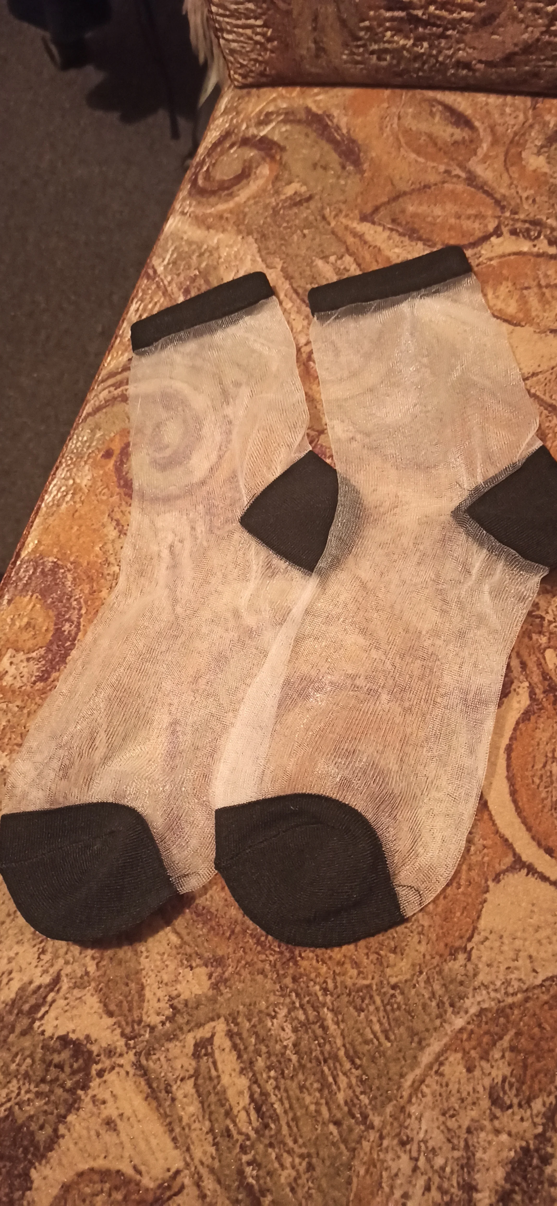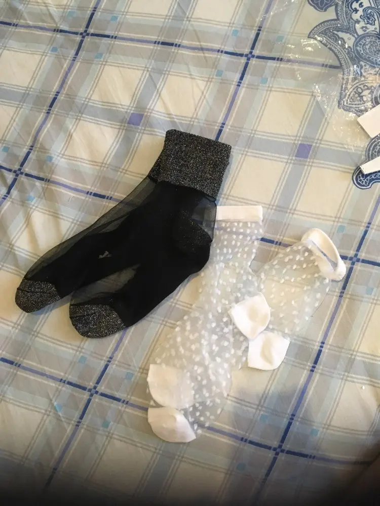 Замечательные носочки. Непрозрачные части хлопковые, хорошо сидят на ноге. У меня 36 размер ноги- как раз.