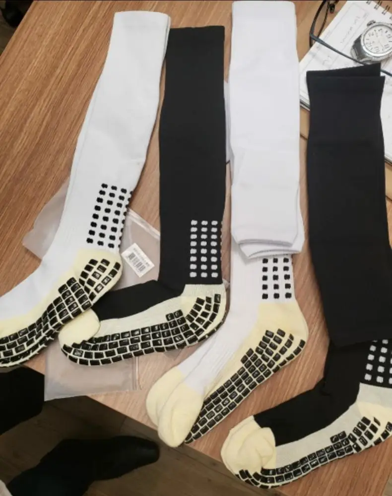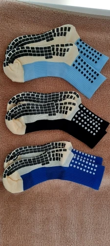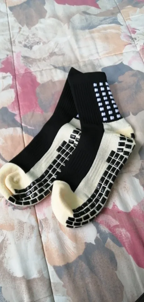 + Резиновые точки склеены на ткань очень хорошо и никогда (действительно никогда не) оторвать. -Ткань сама по себе низкого качества, и вы получаете отверстия на пальцах после 1 недели тренировок. С учетом разумной цены, я просто купил новую упаковку этих носков у того же продавца и не беспокоюсь слишком сильно.