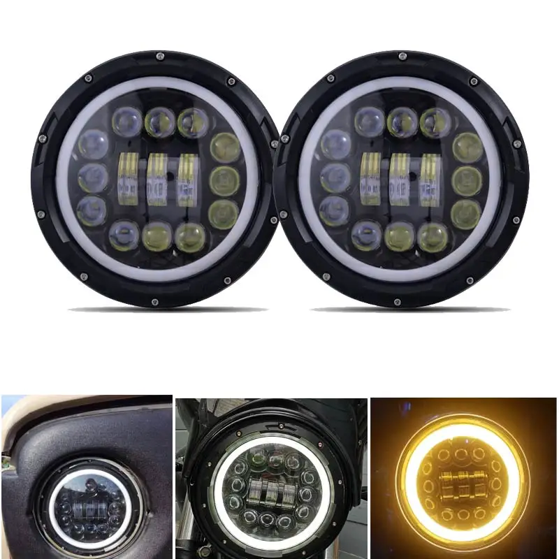Фара головного света H4, 7 дюймов, 2 шт., с гало, ангельские глазки, для Лада 4x4 Урбан, нива, джип JK, Land rover, защитник, Хаммер