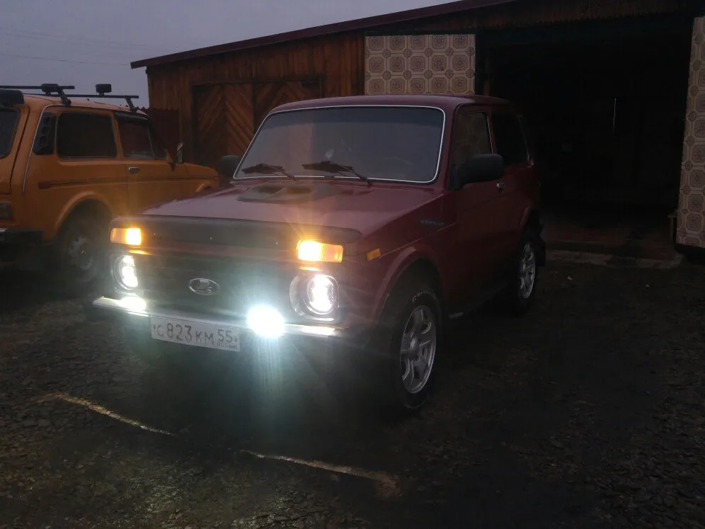 на ниву подходит если отпилить один посадочный рог из трёх, остальные два подпилить болгаркой. + нужно вывести фишки на габариты и поворотники. светят отлично!