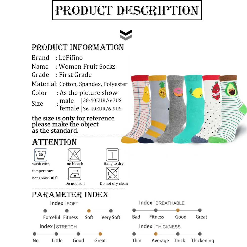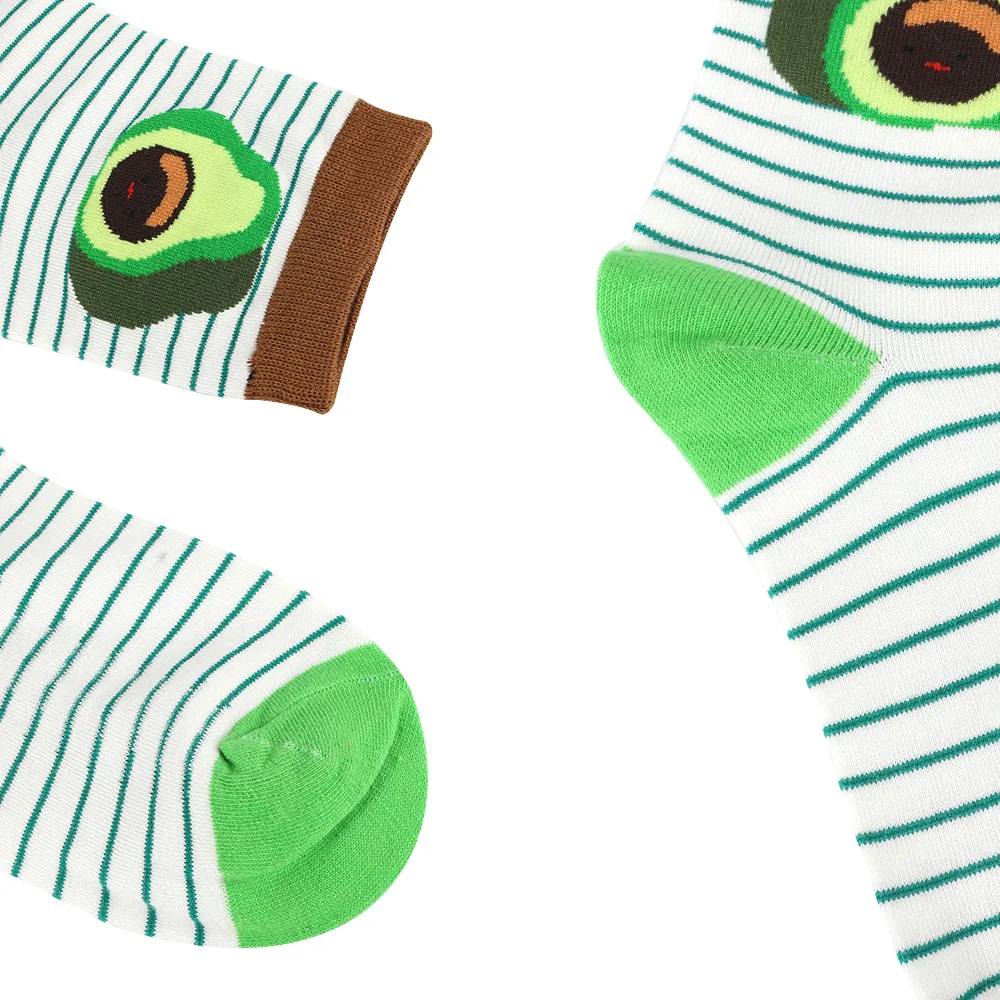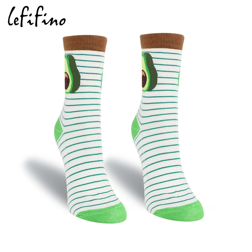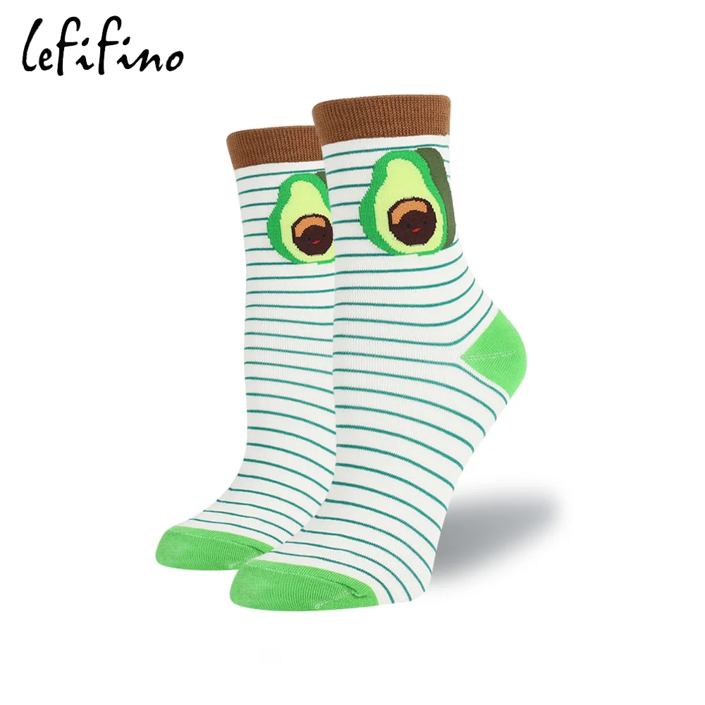 Носки женские хлопковые, в полоску, с принтом фруктов, картофеля, ананаса, питайи, авокадо, лимона, Пончика, Le11840