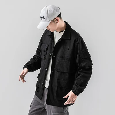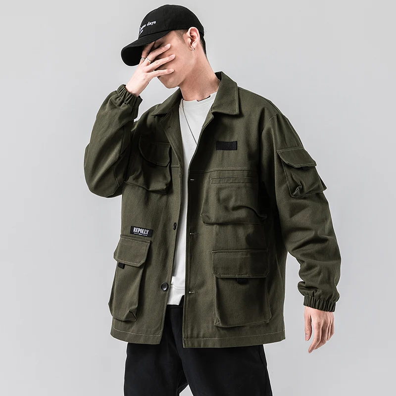 Мужская повседневная куртка из мытого чистого хлопка, армейский зеленый Бомбер, куртка-карго, весна 2022