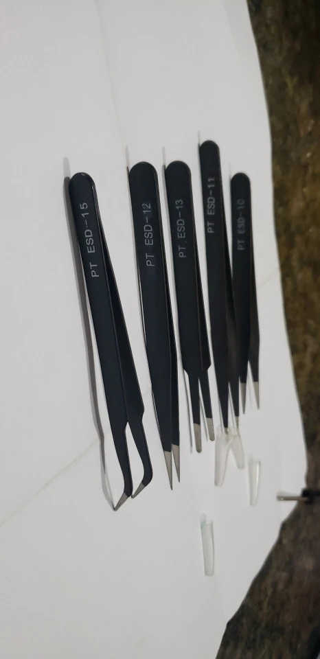 Пинцеты очень мягкие. Кончики пинцетов очень плохо прилегают друг к другу. Работать с мелкими компонентами совсем не возможно