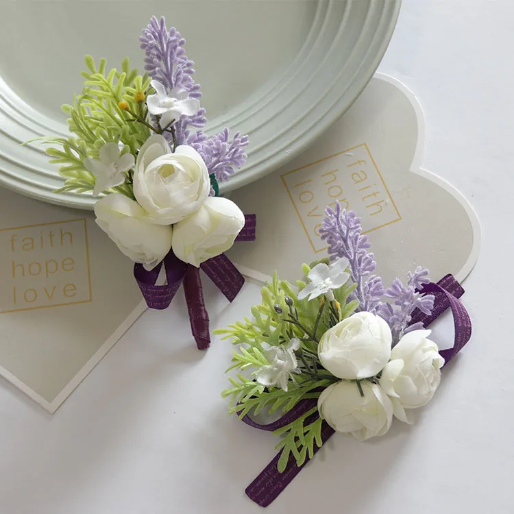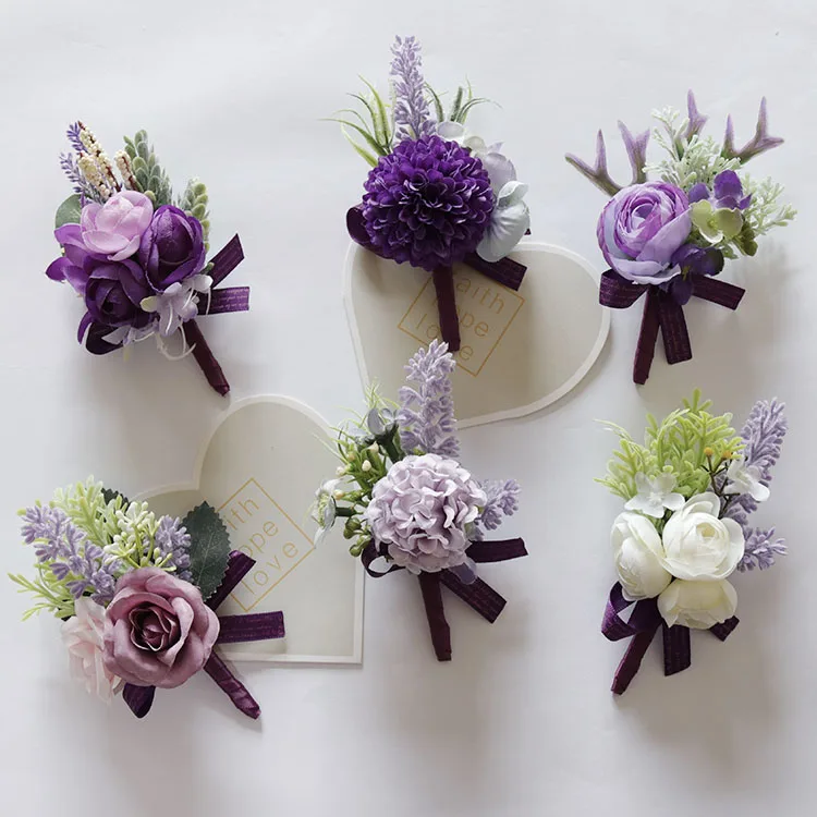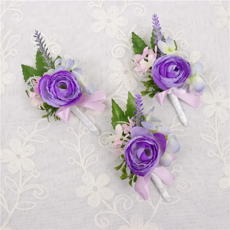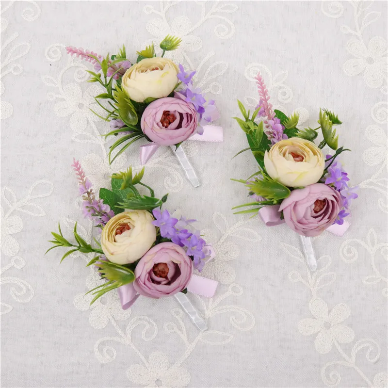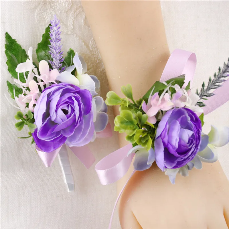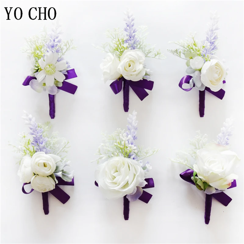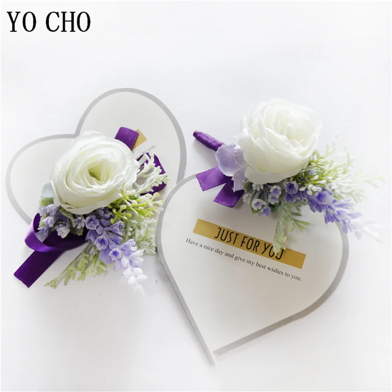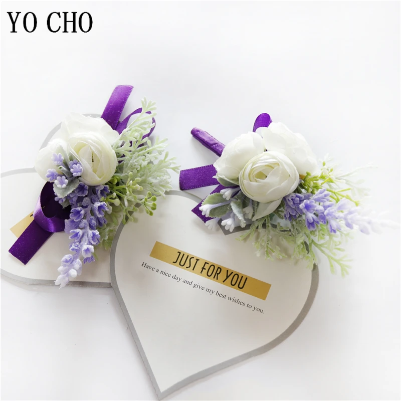 YO CHO красивая свадебная бутоньерка на запястье, браслет подружки невесты, сестры, ручная работа, цветы для мужчин, для вечеринки, выпускного вечера, темперамент, фиолетовый чай, Роза