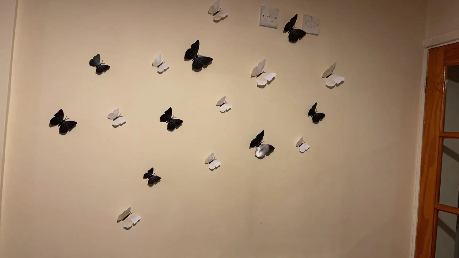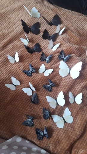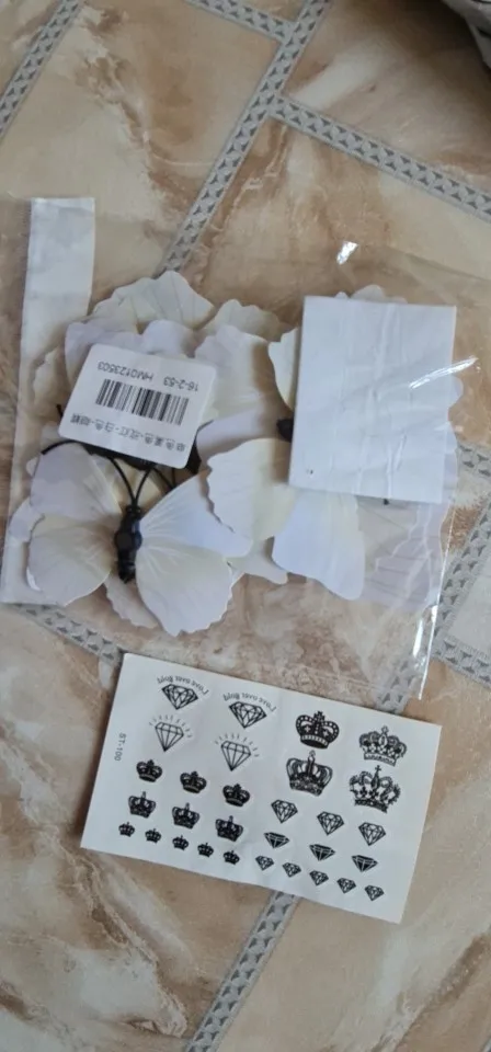 Очень красивые и соответствуют описанию в описании коробки. Бабочка имеет два способа использования. Магнит и наклейки на стену. Я использовал наклейку для стены и идеален. Доставка товара занимает месяц больше или меньше.