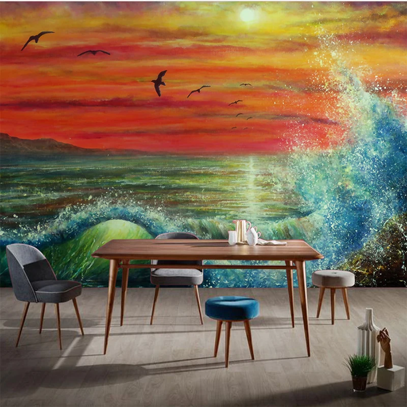 На заказ картина маслом Se чайки закат пейзаж настенная ткань гостиная диван Настенные фотообои обои для дома