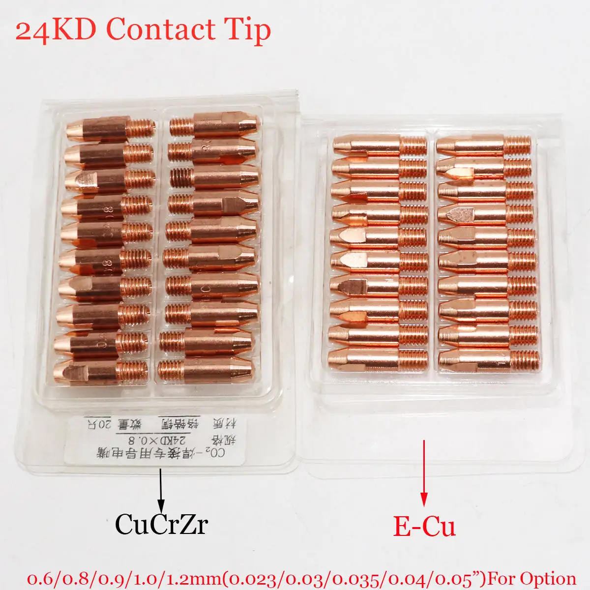 20 шт. 24KD Контактный наконечник CuCrZr MIG фонарьGun расходные материалы 0,81,01,2 мм сварочные наконечники для европейского стиля MIG MAG сварофонарь