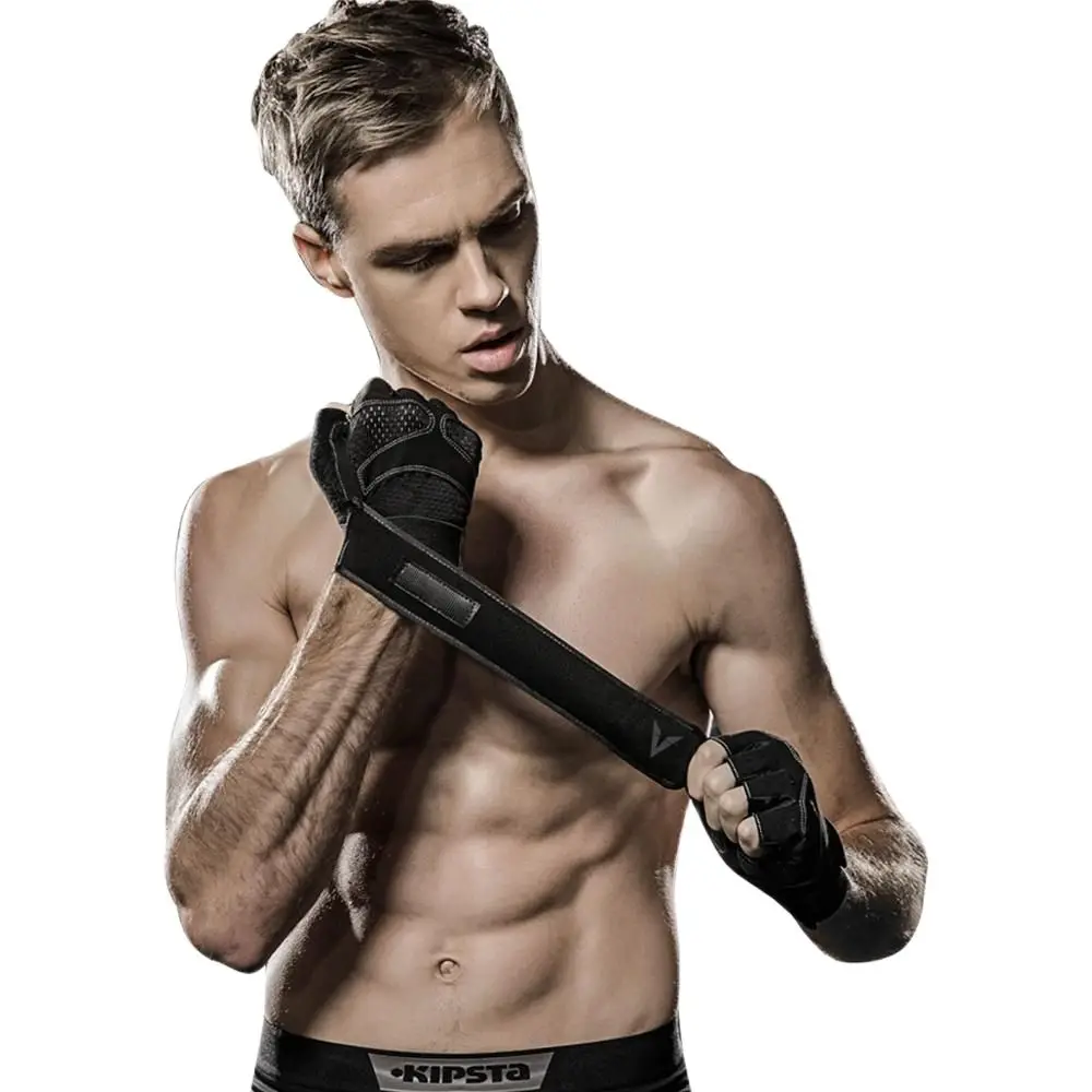 Профессиональные Нескользящие перчатки Veidoorn для спортзала с длинным ремнем, защита запястья, дышащие спортивные, для фитнеса, тяжелой атлетики, 1 пара
