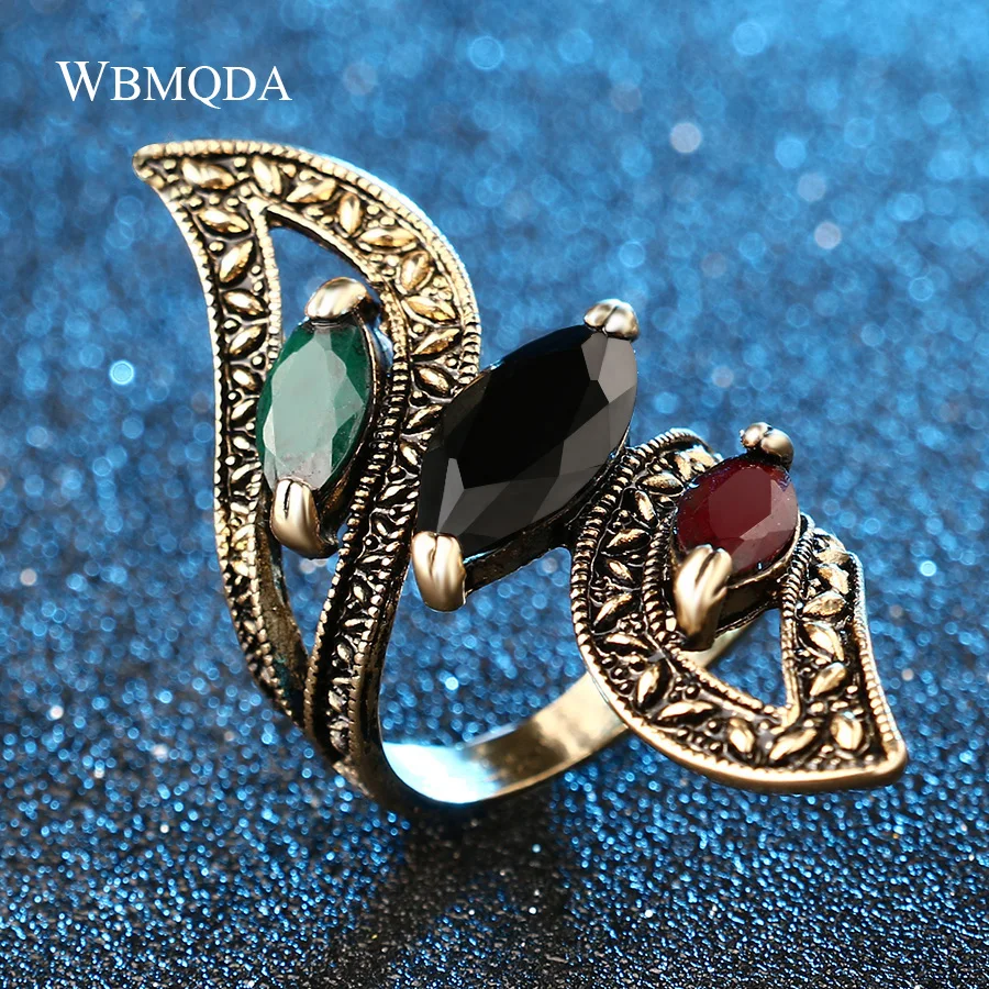 Винтажное кольцо с большими крыльями в стиле бохо, античное золото, кольцо с близнецами для женщин, массивное индейское индийское ювелирное изделие 2018, бесплатная доставка