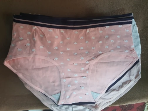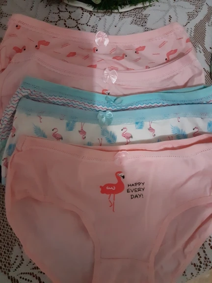 Трусики хорошего качества.на 44 размер L подошёл.доставка за две недели... странно что в отзыве нет возможности оставить фотку....Заказ пришел в zip пакете 5 штук..размер у всех одинаковый,на одних только бантик чуть левее пришит а не посередине...после стирки на программе женского белья 30градусов цвет и форму не потеряли.