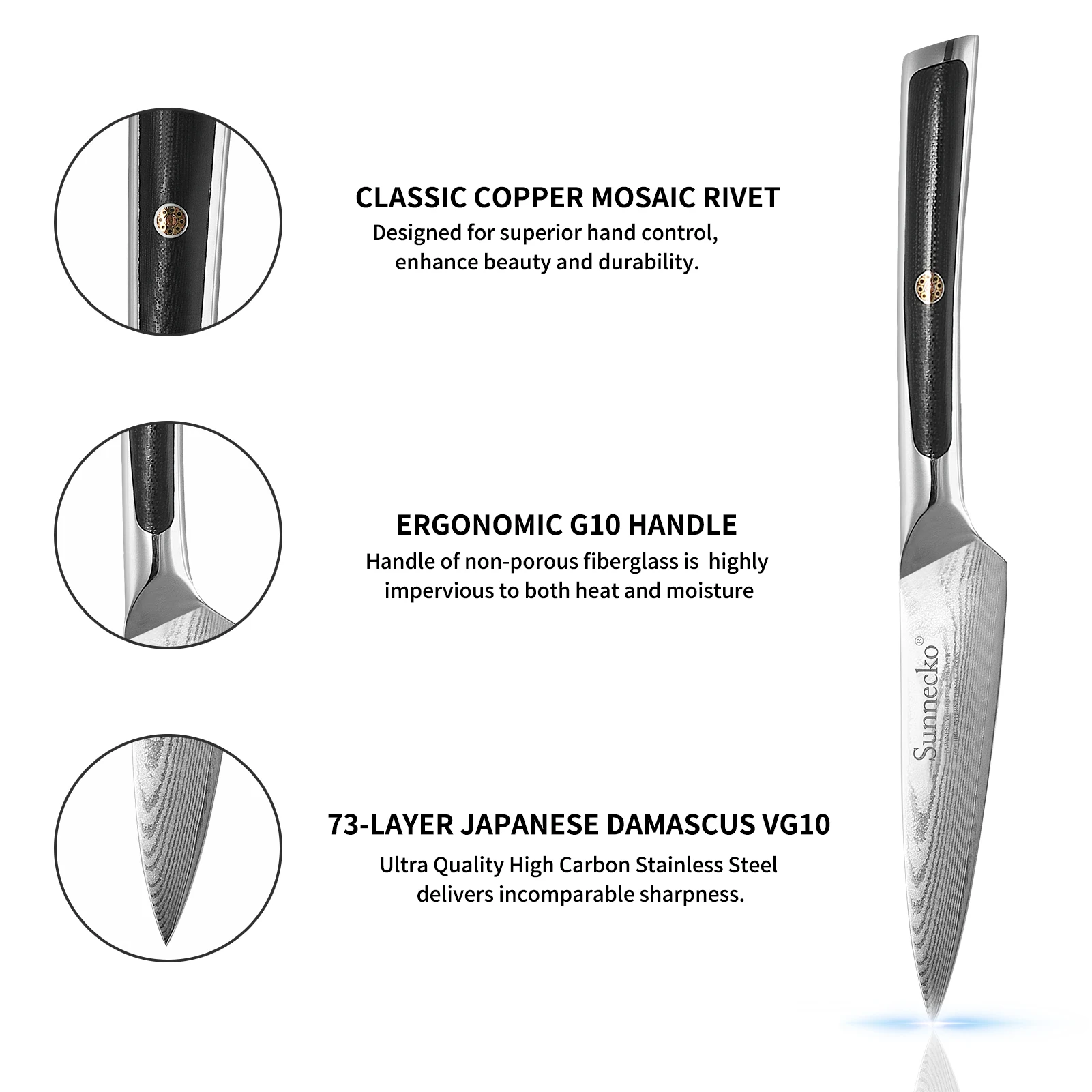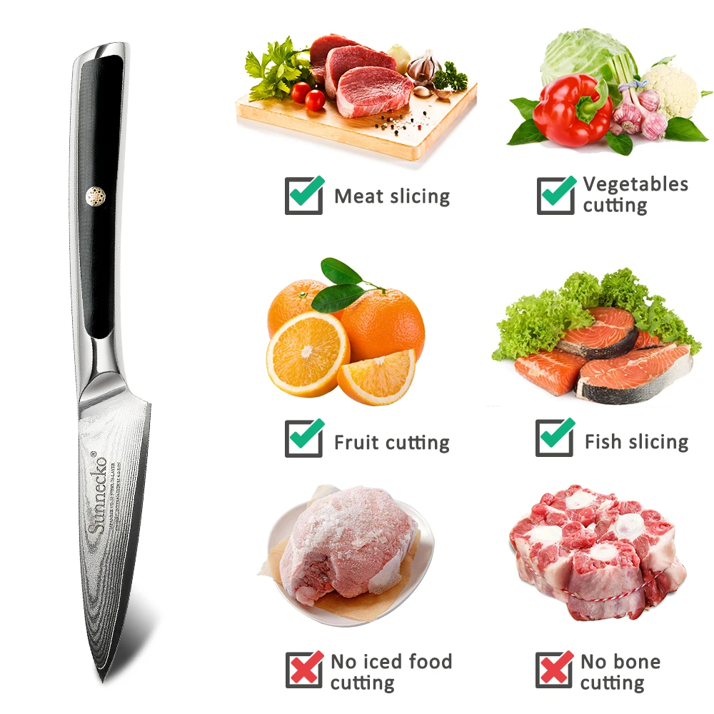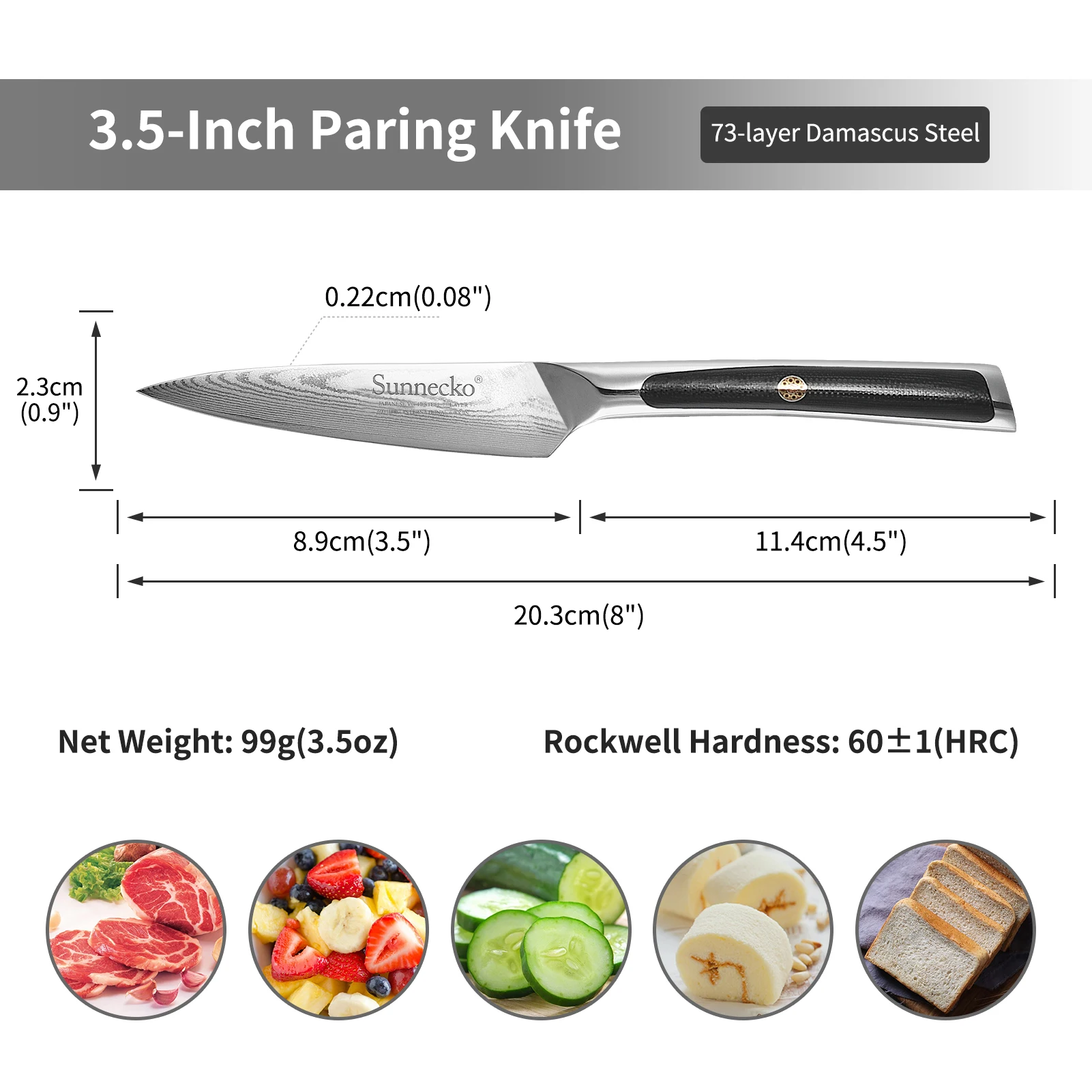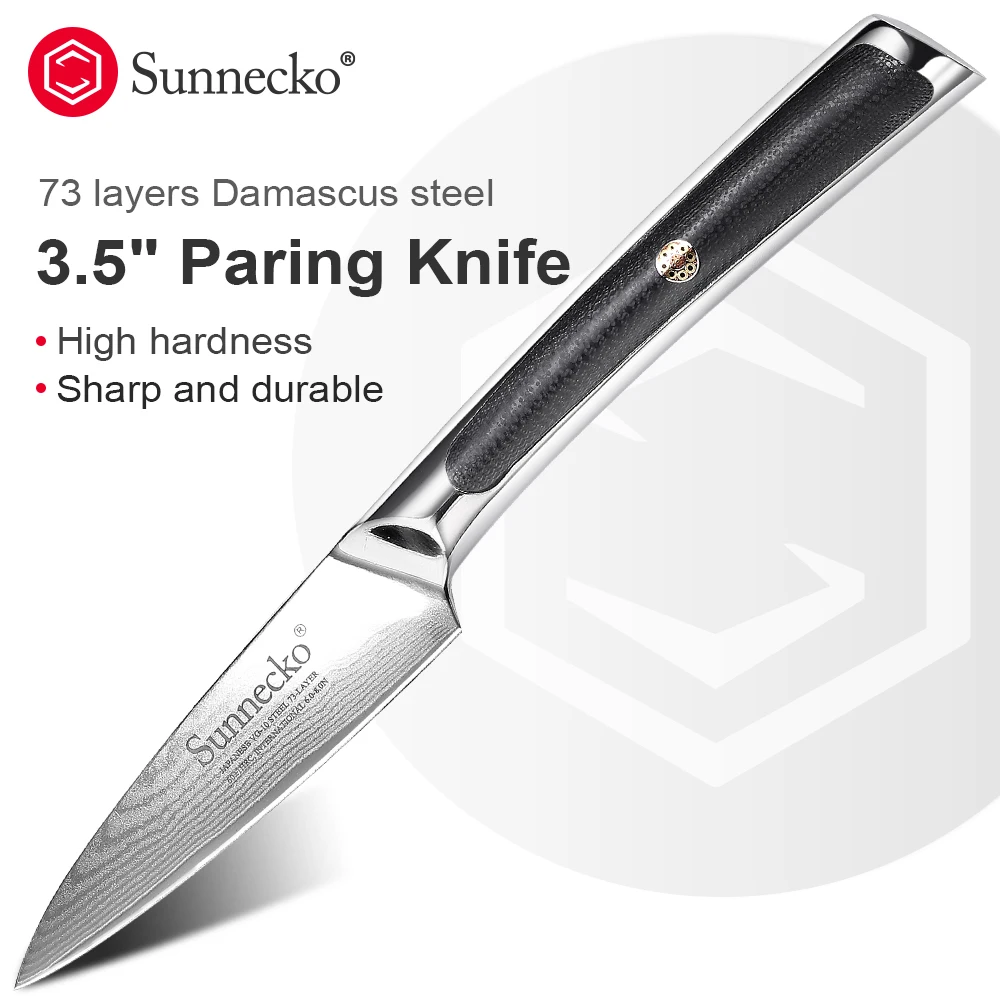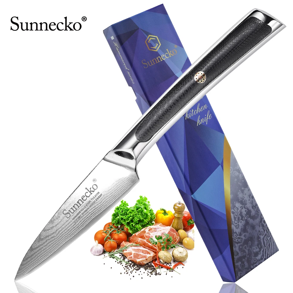 Нож для чистки овощей Sunnecko VG10, японское лезвие из дамасской стали, острый прибор для чистки фруктов, рукоятка из G10, 3,5 дюйма