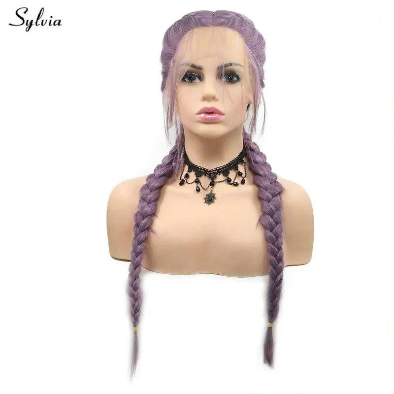 Sylvia натуральный 2x плетение, косички, волосы парик смешанный цвет фиолетовый, бледно-лиловый, разноцветные футболки с Двойные плетеные парики с детскими волосами Синтетические волосы на кружеве парик
