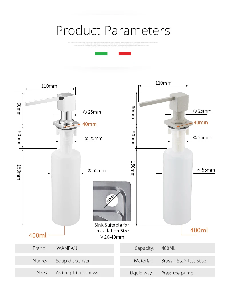 Настенные кухонные дозаторы мыла квадратный насос хромированные дозаторы мыла для кухни встроенный столешница дозатор 2306