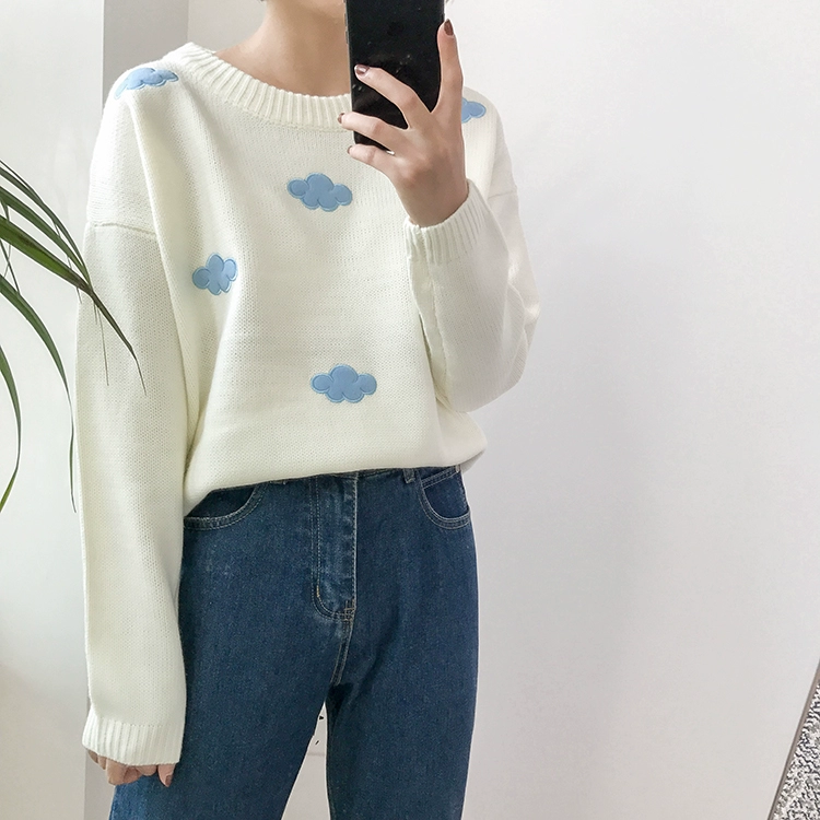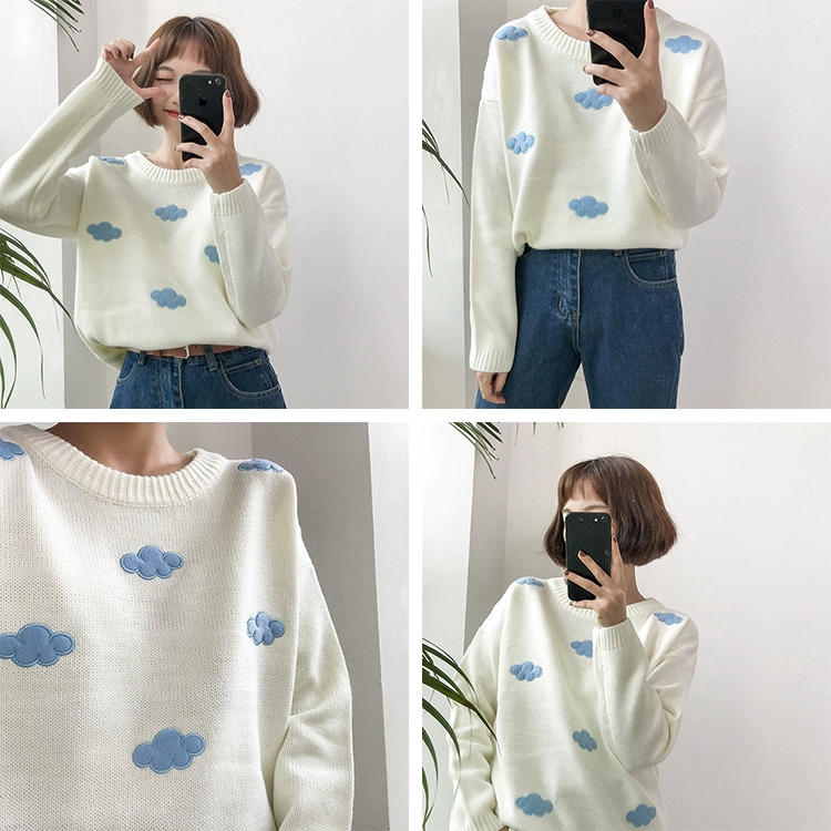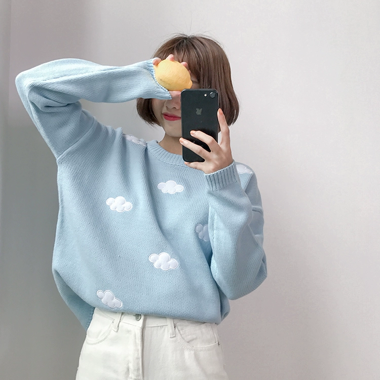 Свитер женский Harajuku, толстый, винтажный, с облаками, 2020