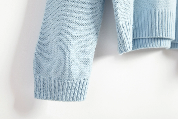 Цвет очень приятный нежно-голубой. Пряжа - акрил. Облачка пришиты хорошо. Свитер, как в описании. Доставка около 3 недель.