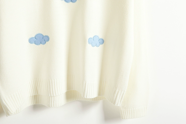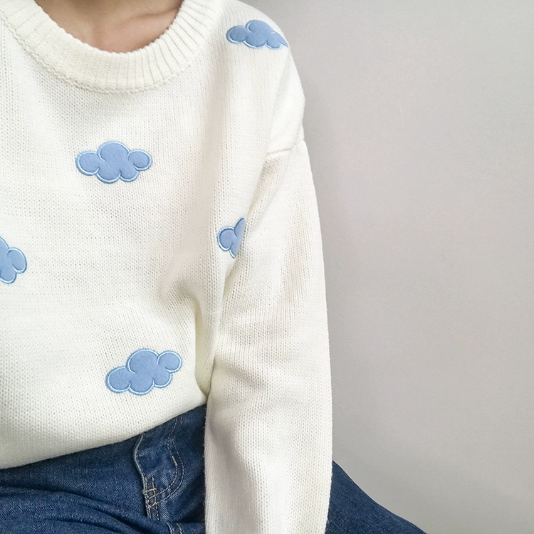 Этот продукт кажется довольно высоким качеством. Вышитые на свитере тучки отличаются от остальных. Они почти на ощупь бархатистые, и я думаю, что это действительно хорошая деталь. Сам Свитер немного зуд, но в целом все равно хороший.