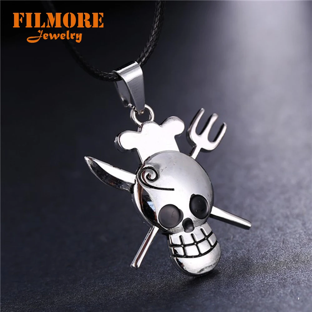 2018 в винтажном стиле; С рисунком из аниме One Piece с изображениями героев мультфильмов, модная одежда логотип скелета кулон ожерелье, нержавеющая сталь, популярная веревочка цепи ожерелье кулон известный аниме подарки оптом