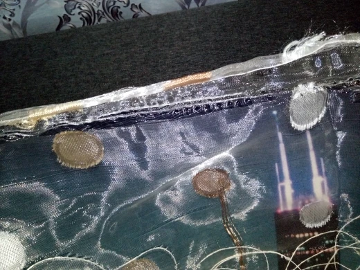 Штора смотрится красиво, особенно на солнце. Качество конечно не отличное. Затяжки, как я читала в предыдущих отзывах, действительно есть. Но их видно вблизи. А так симпатичная тюль, в принципе качество почти соответствует цене.