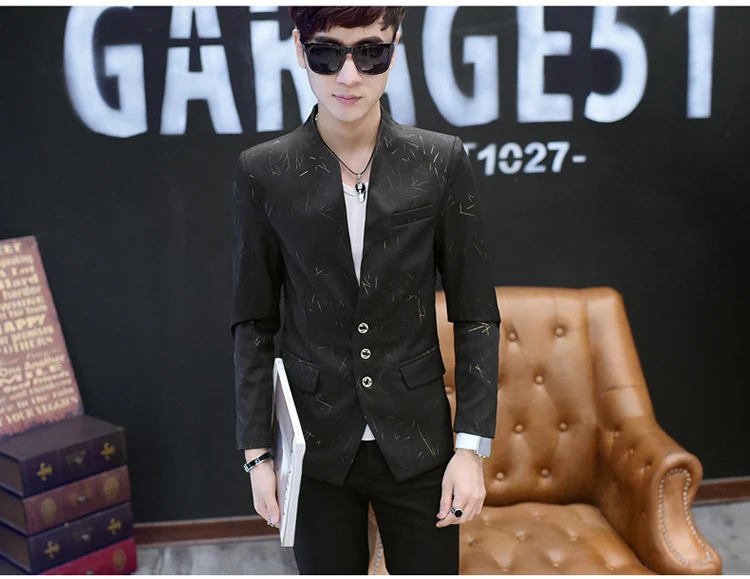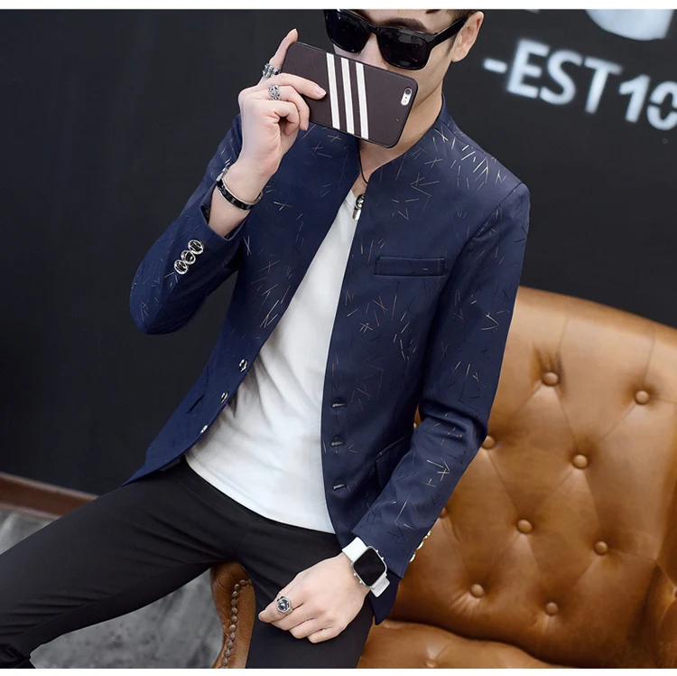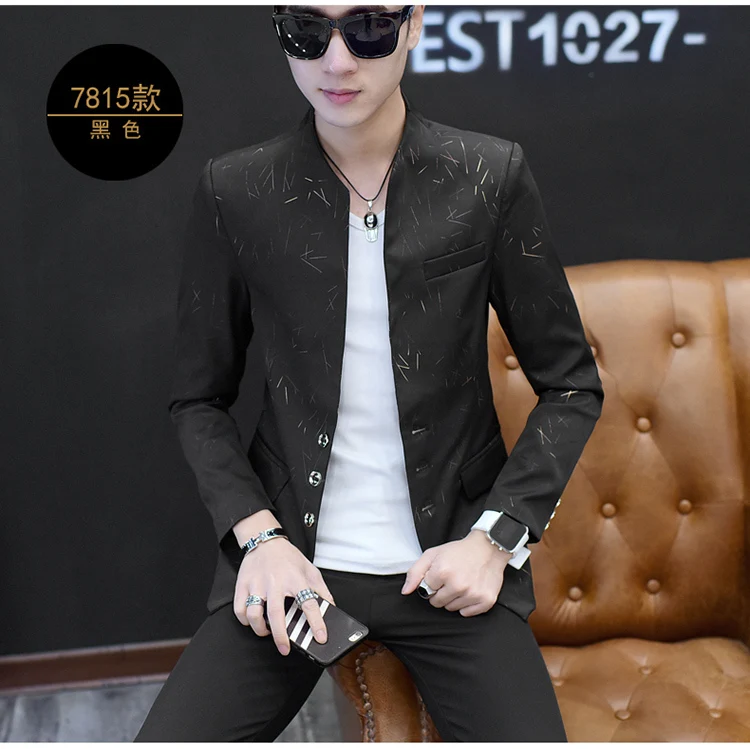Мужской блейзер с китайским воротником, приталенный Блейзер с золотым принтом для вечеринки, клуба и выпускного, большие размеры 6xl