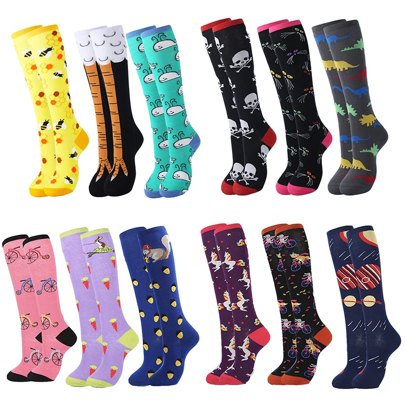Женские гольфы VPM, хлопковые, разноцветные, в стиле Харадзюку, с милыми животными, кошкой, курицей, Китом, Пчелкой, носки с черепами