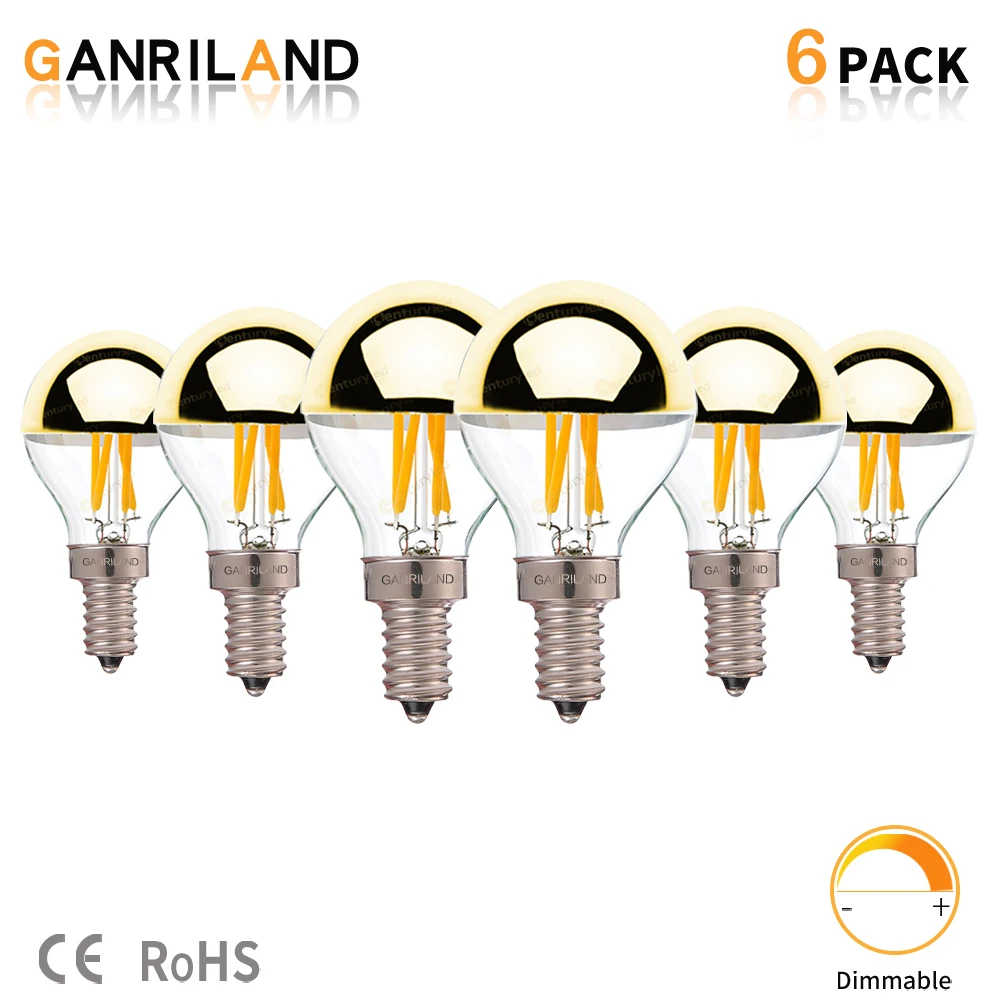 Светодиодная лампа накаливания Ganriland G45, 4 Вт, Золотая зеркальная лампа в стиле ретро с круглыми лампочками Эдисона теплого белого света, 2700K, E14, приглушаемая Led лампочка накаливания