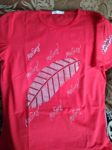 Рекомендую однозначно. Супер футболка,качественный трикотаж,добротная аппликация из страз. Хорошо пошита. Стоит своих денег. На ОГ 110 размер угадала,не обтягивае,сидит аккуратно. Товар шёл месяц. Спасибо продавцу. Всем удачи.