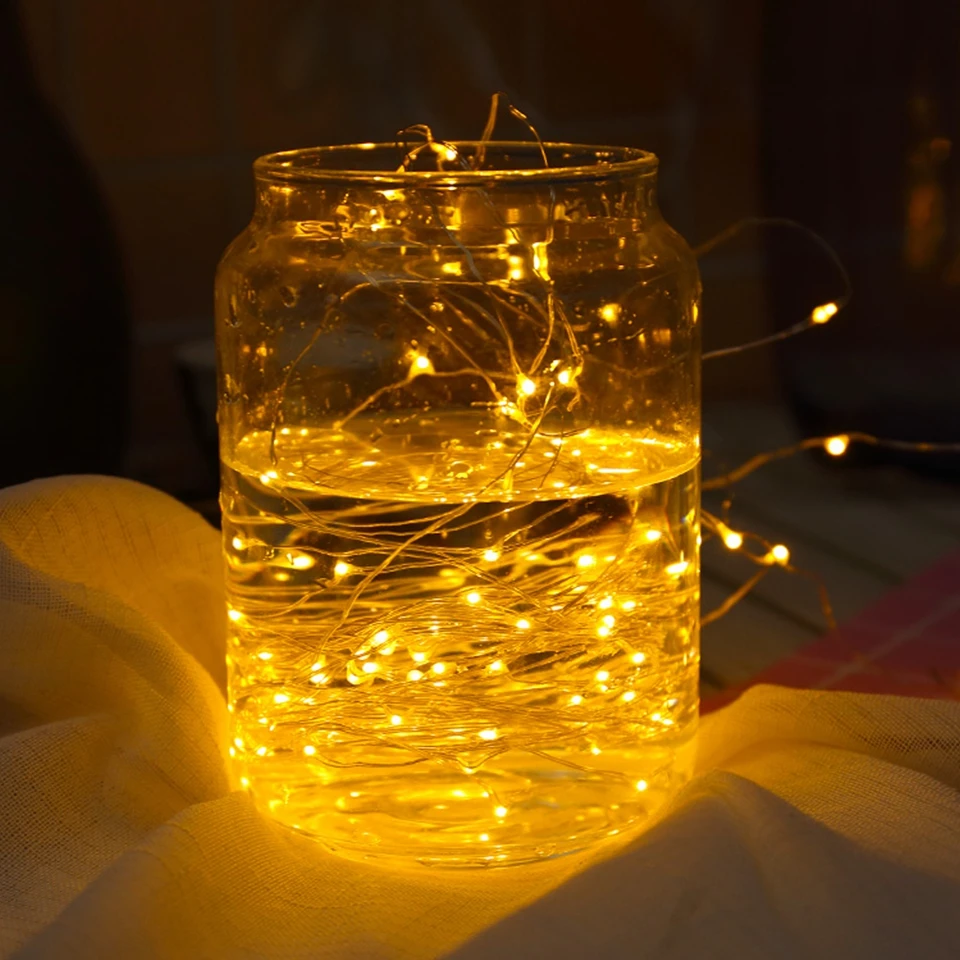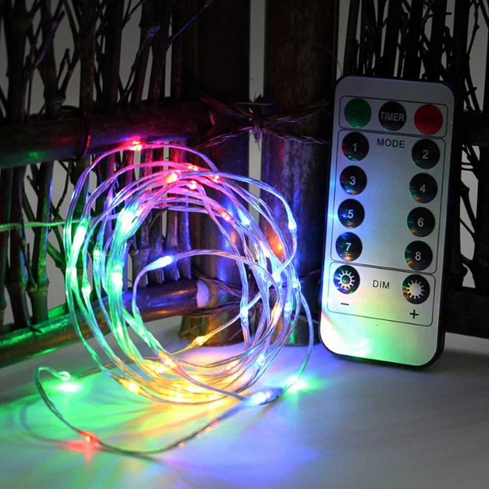 Гирлянда из медной проволоки, 5 м, 10 м, 20 м, светодиодная гирлянда с пультом дистанционного управления для украшения рождественской елки, свадебного помещения