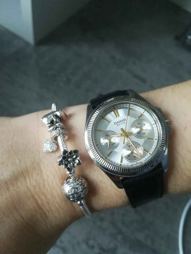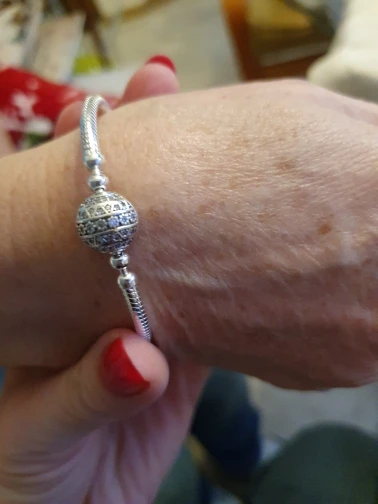 Браслет очень красивый. Немного легче, чем оригинал, но цена за этот товар отличная. Он не слишком жесткий и не слишком мягкий. Застежка отличная, невозможно случайно открыть. Мое запястье 15,5 и заказал 19, потому что мне нравится снимать его, и я хочу заполнить его кулонами. На самом деле 19 см, вычисление также закрытие. Если вы хотите поставить несколько подвесок, вам больше нравится более плотный, чем 18. Прибыл всего за 10 дней. Совет по продукту и продавцу.