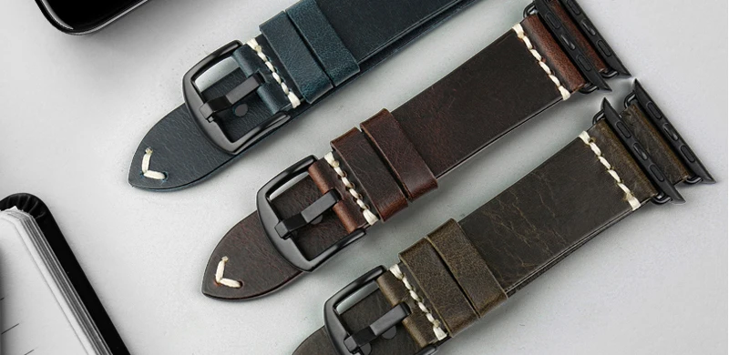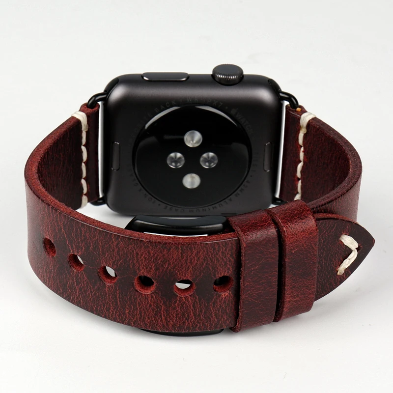 Ремешок кожаный для Apple Watch Band 44 мм 45 мм 40 мм 42 мм 41 мм 38 мм Series 7 6 5 4 3 iWatch, винтажный браслет из вощеной кожи
