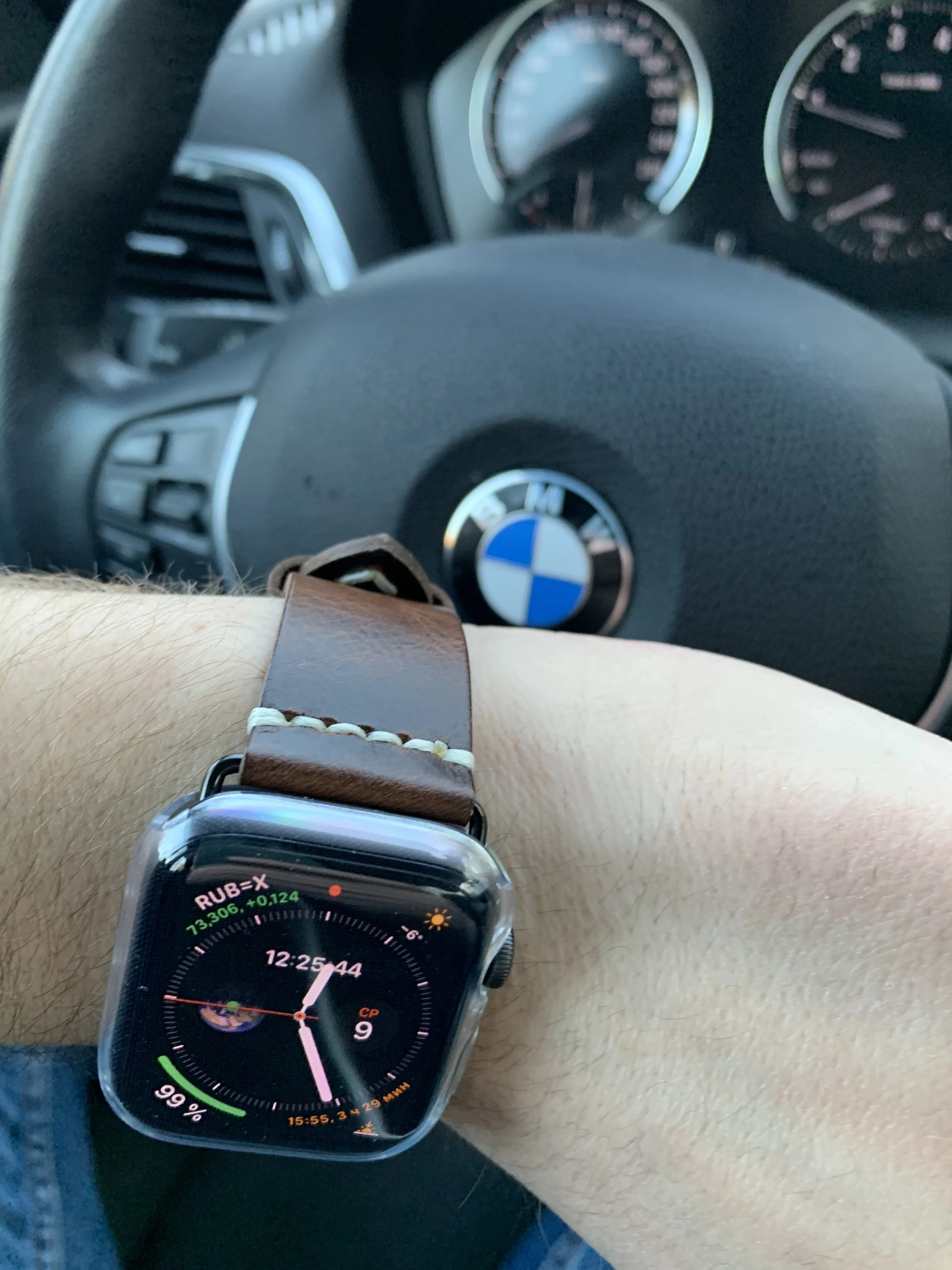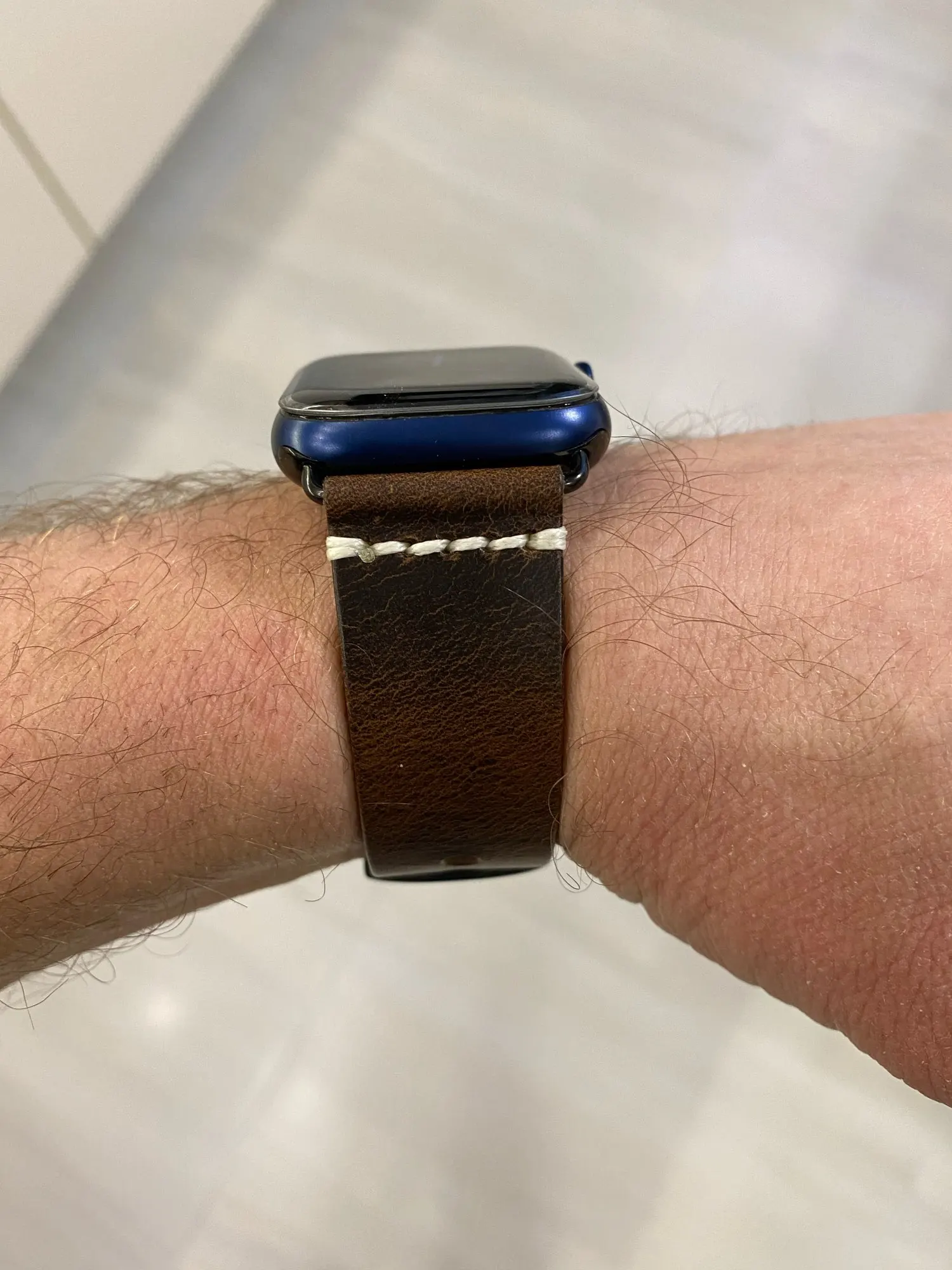 Он прибыл раньше, чем ожидалось. Ремешок очень хороший и выглядит очень жестким. Идеально подходит для Apple Watch 6. Стоит своих денег.