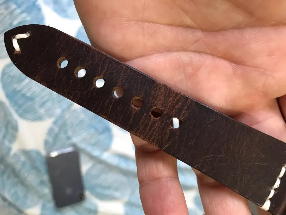 Кожа мягкая, толщина 1,5 мм, дубление сделано слабо, от чего материал эластичен мягок. Покраска выполнена сразу после дубления, от чего при изгибах краска тянется и трескается, но это придает только необычный вид. И да кожа настоящая по всей видимости крупно рогатого скота, наверняка коровья. Основная часть сложена в два раза, а между ним ремешок проклеен, в общем за такую цену очень порадовало что не дешёвый дермантин)